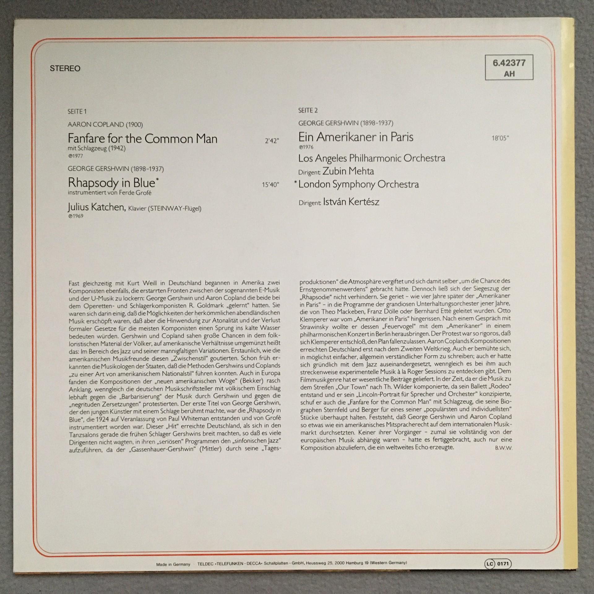 Q953 Gershwin Rhapsody in Blue Mehta Kertesz DECCA 6.42377 AH Stereo