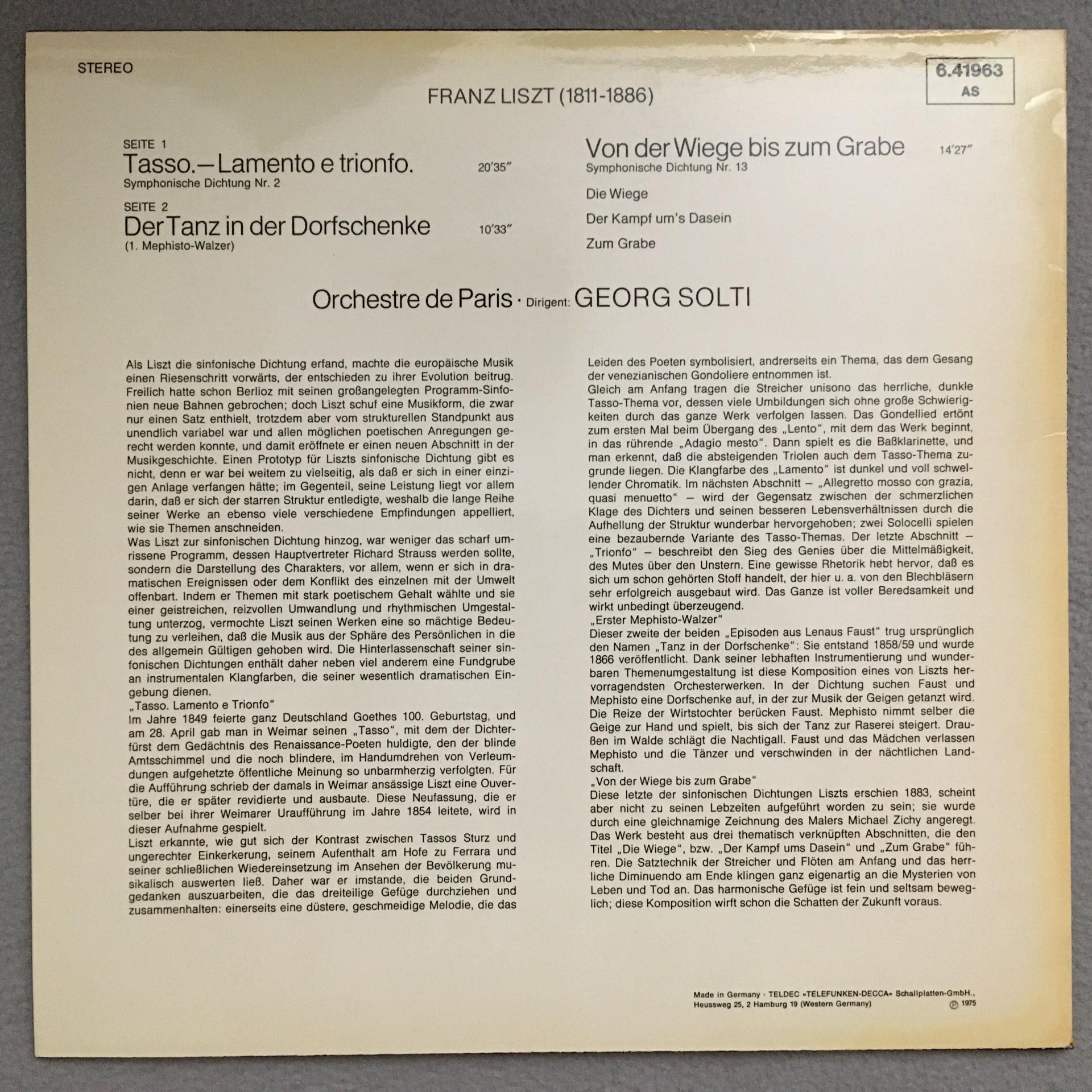Q956 Liszt Tasso Orfeo Symphonic Poems Solti DECCA 6.41963 AS Stereo