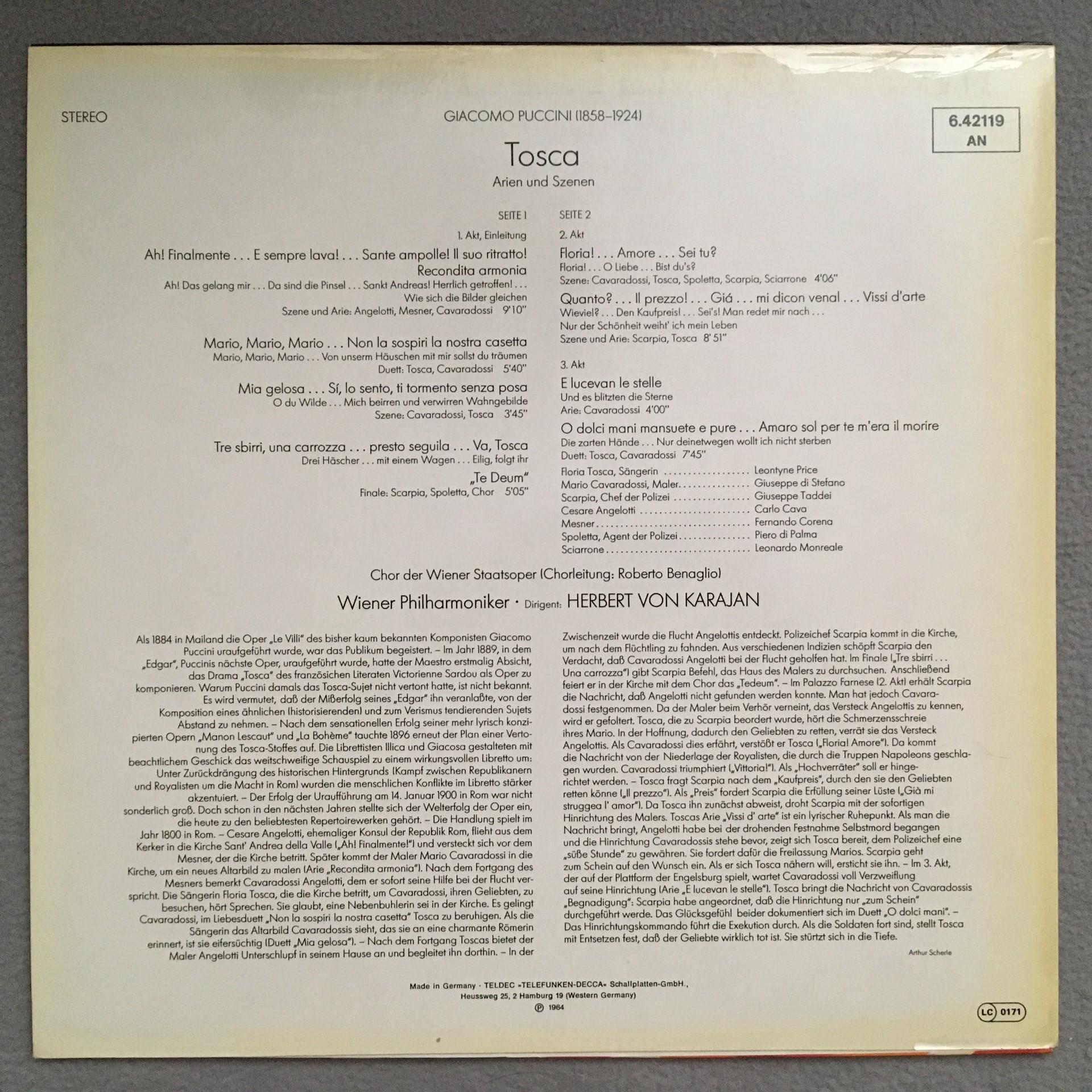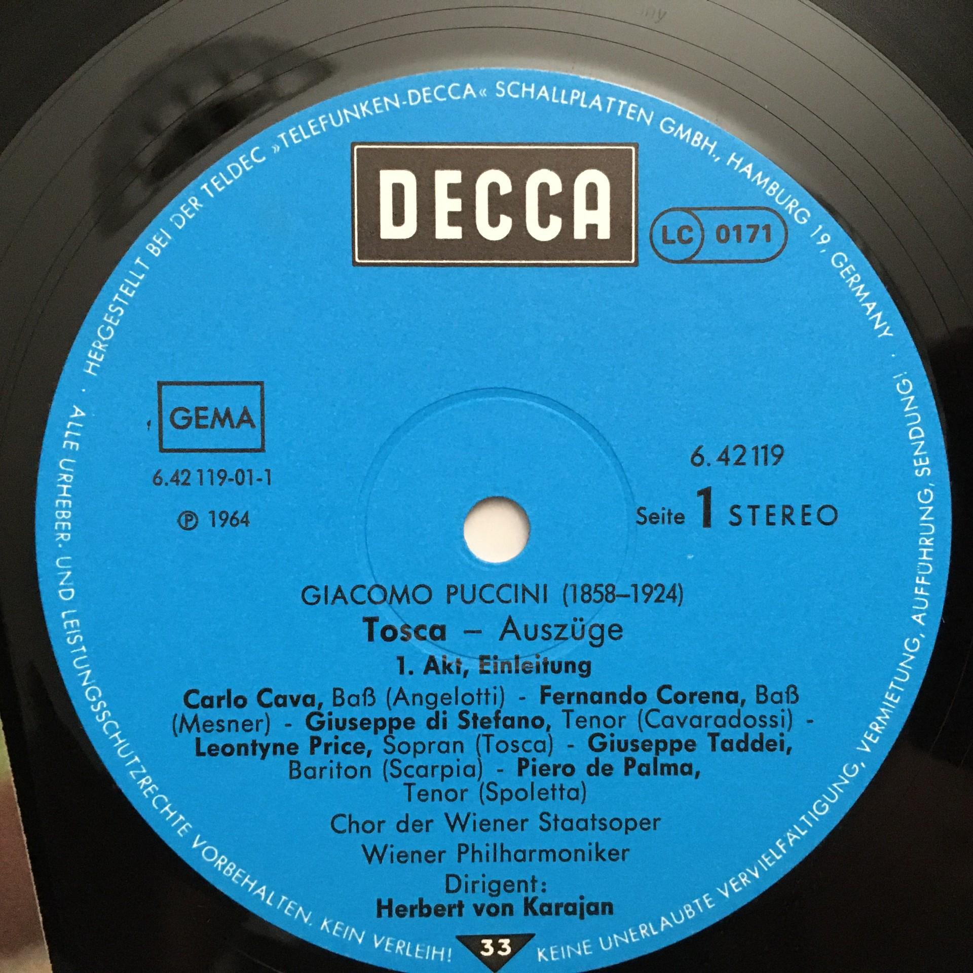 Q957 Puccini Tosca Price di Stefano Taddei Karajan VPO DECCA 6.42119 AN Stereo