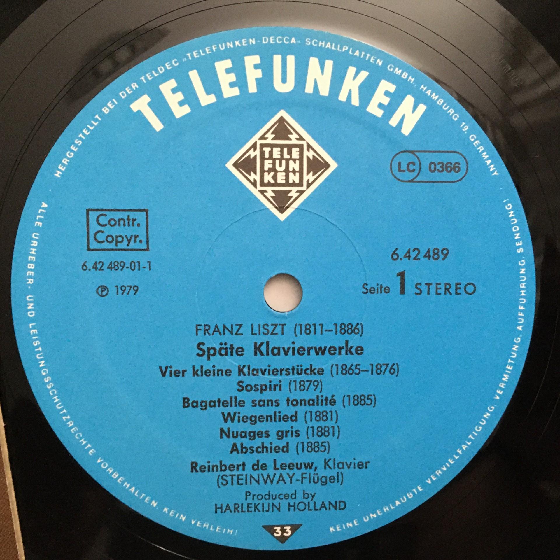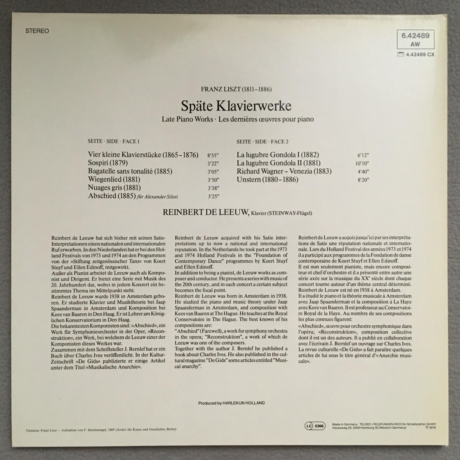 Q962 Liszt Late Piano Works De Leeuw Telefunken 6.42489 AW Stereo
