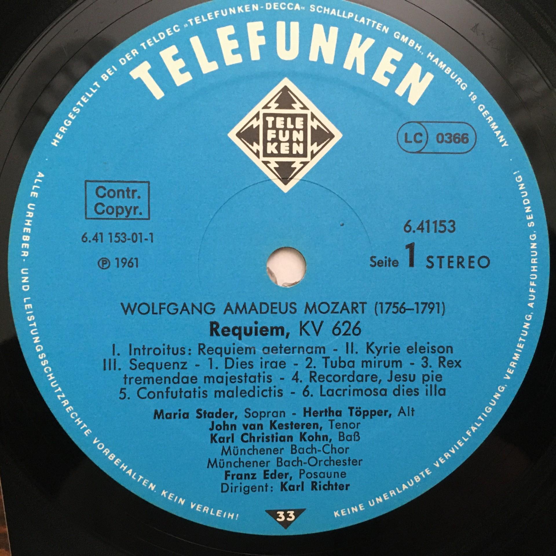 Q964 Mozart Requiem KV 626 Stader Töpper Richter Telefunken 6.41153 AH Stereo