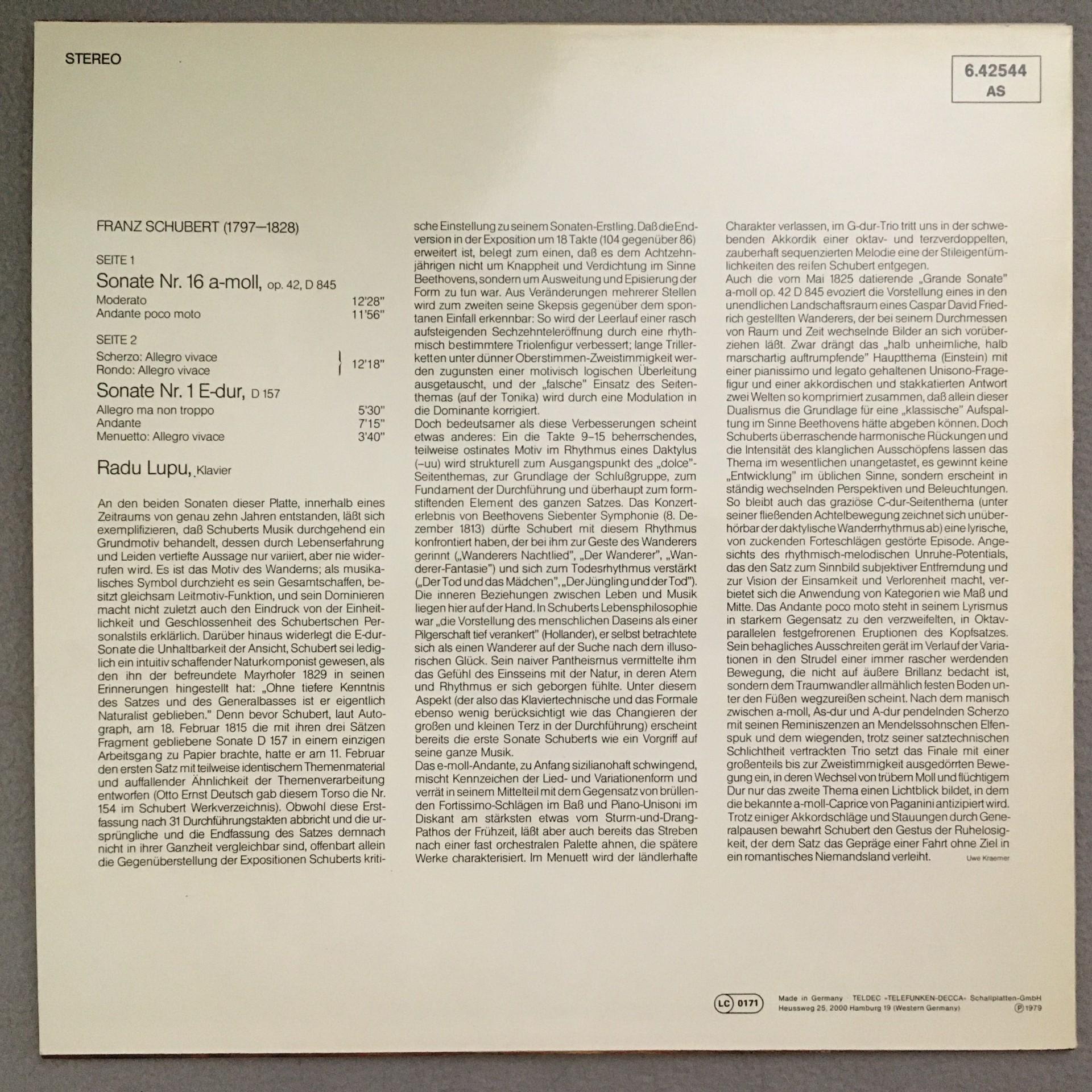 Q973 Schubert Sonatas No.16 & No.1 Lupu Piano DECCA 6.42544 AS Stereo