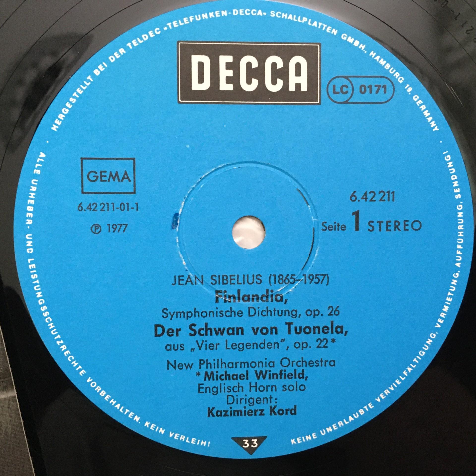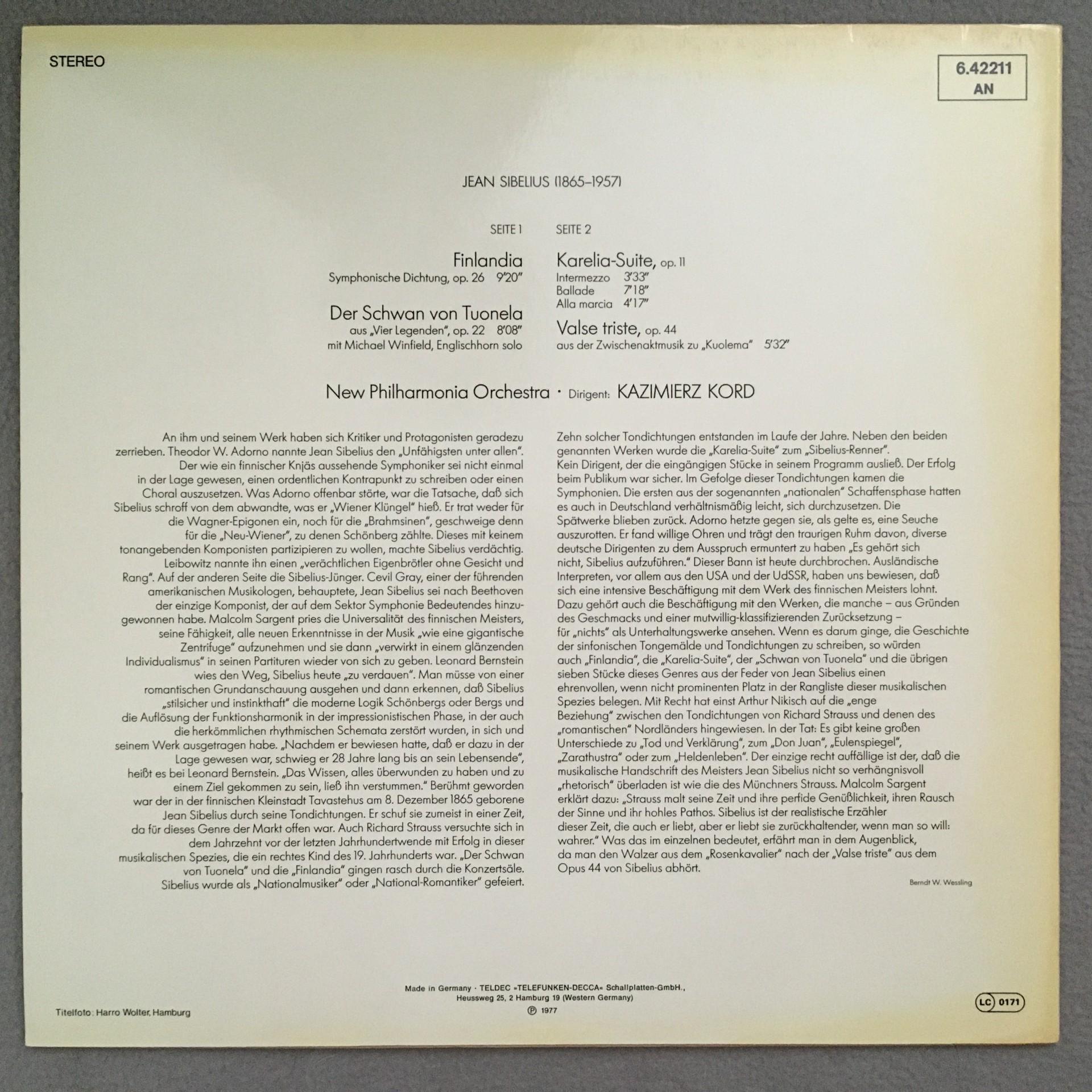 Q976 Sibelius Finlandia Valse Triste Karelia Kord DECCA 6.42211 AN Stereo