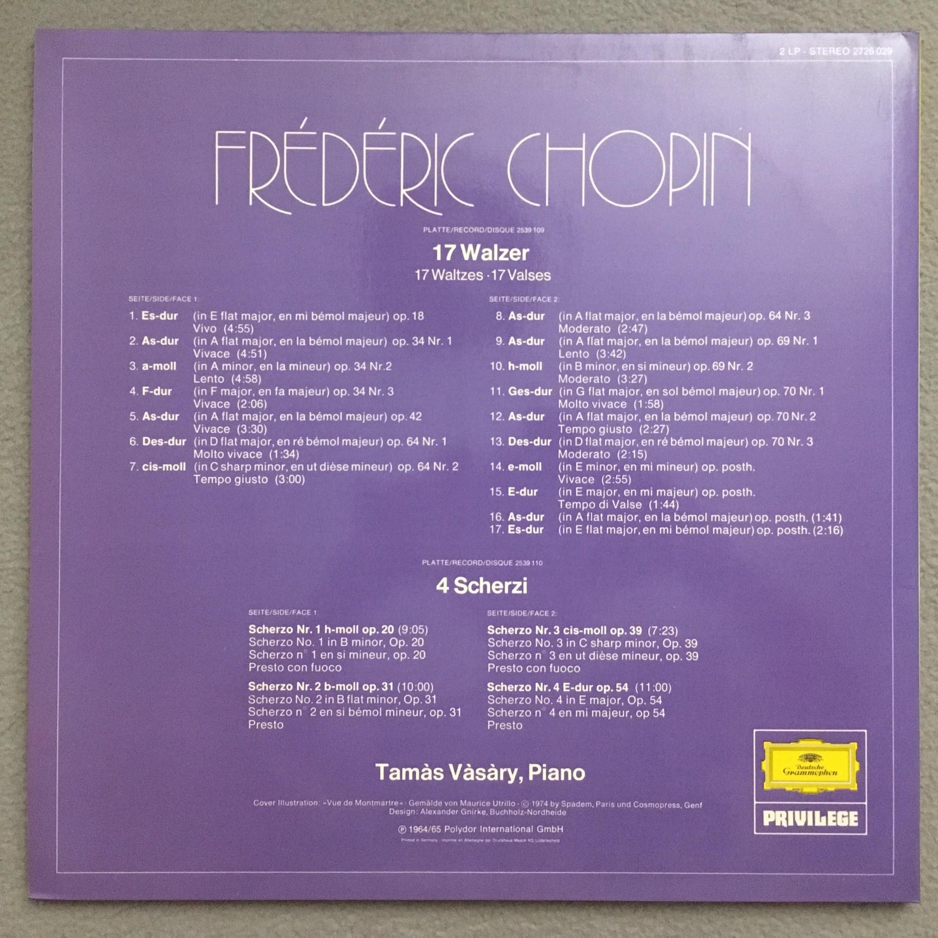 Q996 Chopin 17 Waltzes 4 Scherzi Vasary Piano 2LP DGG 2726 029 Stereo