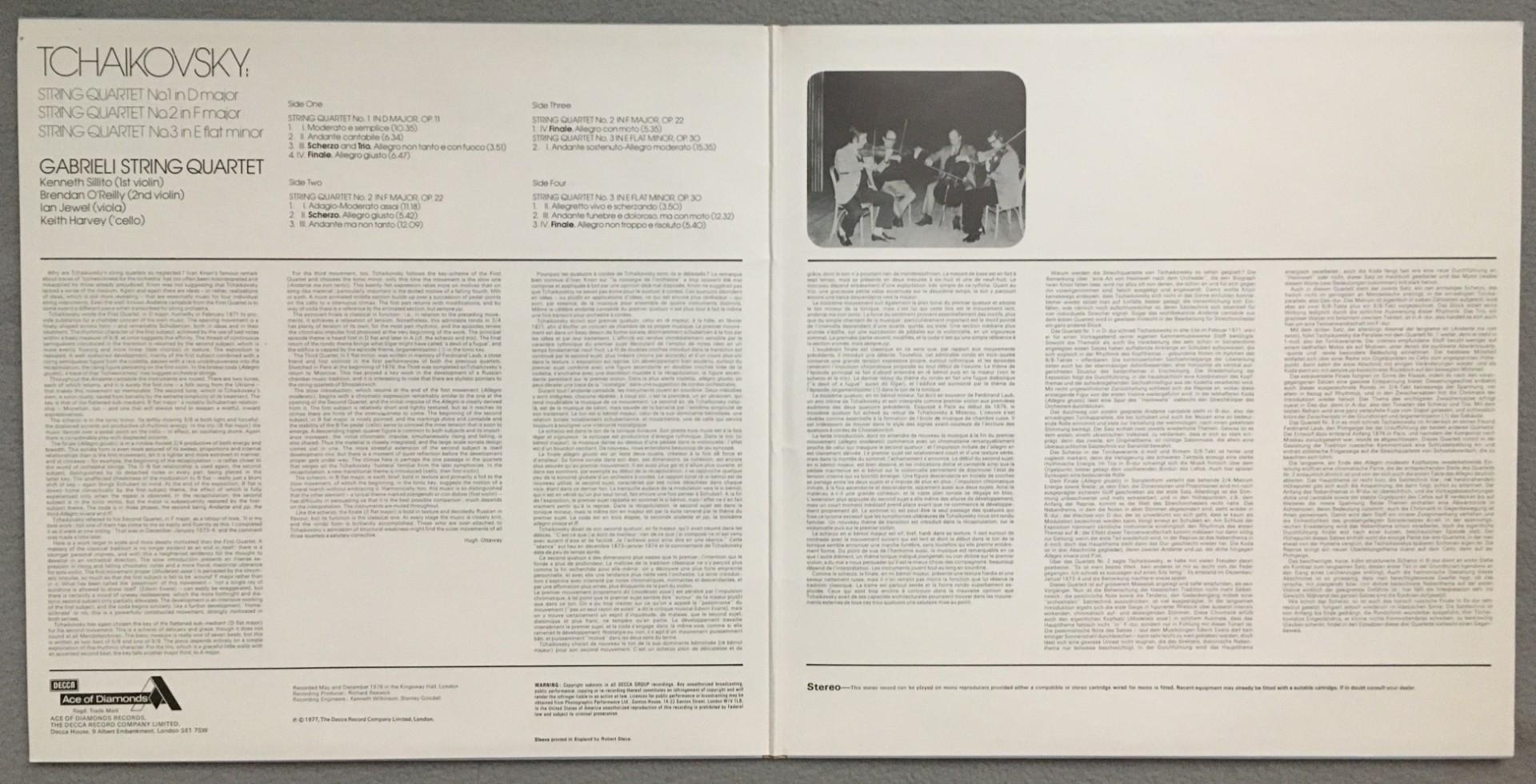 Q998 Tchaikovsky String Quartets Gabrieli Quartet 2LP Decca ACE SDD 524/5 Stereo