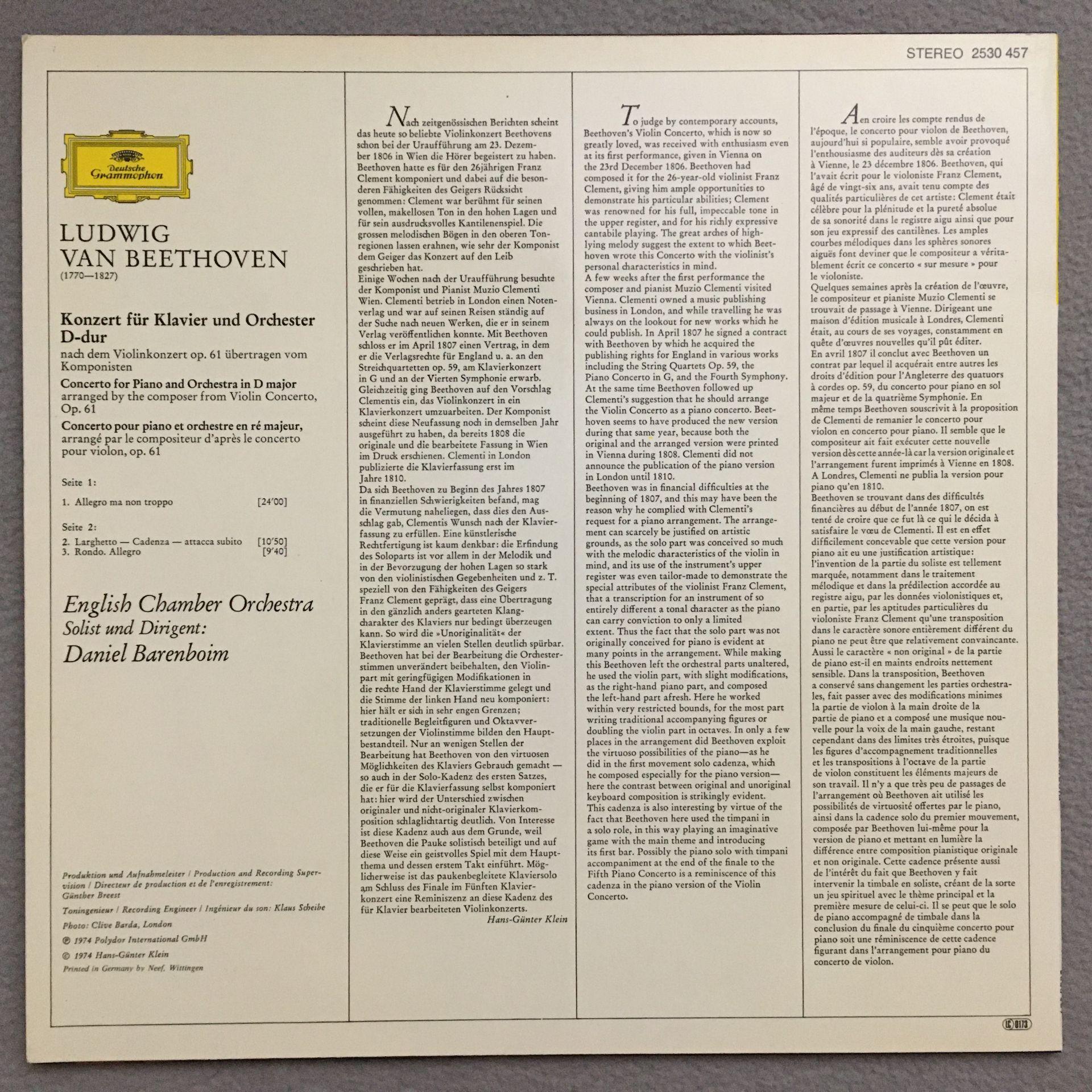 T001 Beethoven Piano Concerto Barenboim DGG 2530 457 Stereo