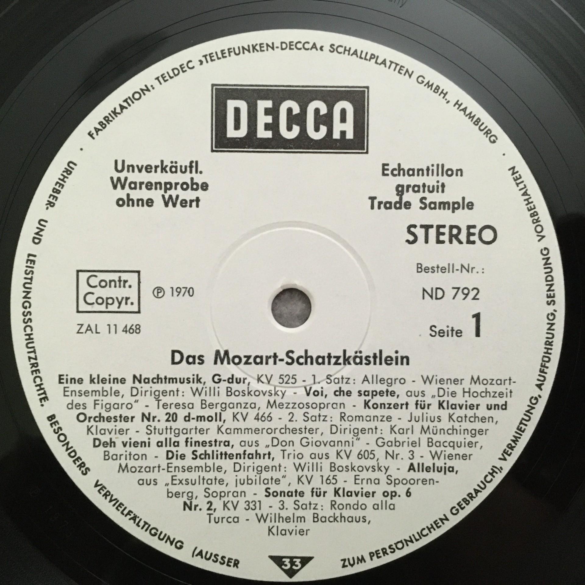 T022 Mozart Schatzkästlein Vol.1 Boskovsky Munchinger DECCA ND 792 Stereo PROMO