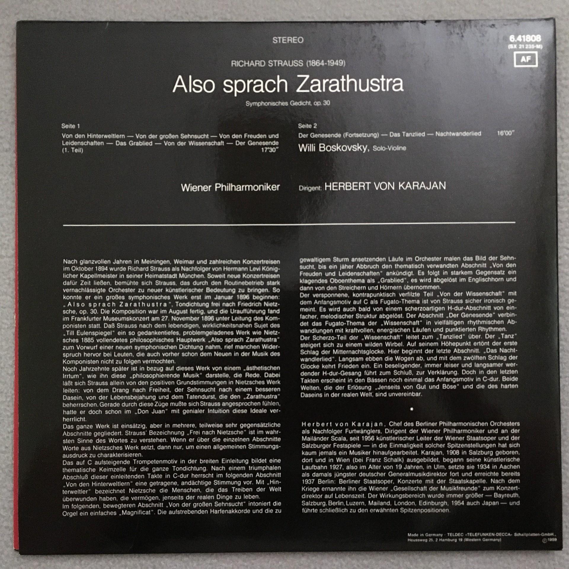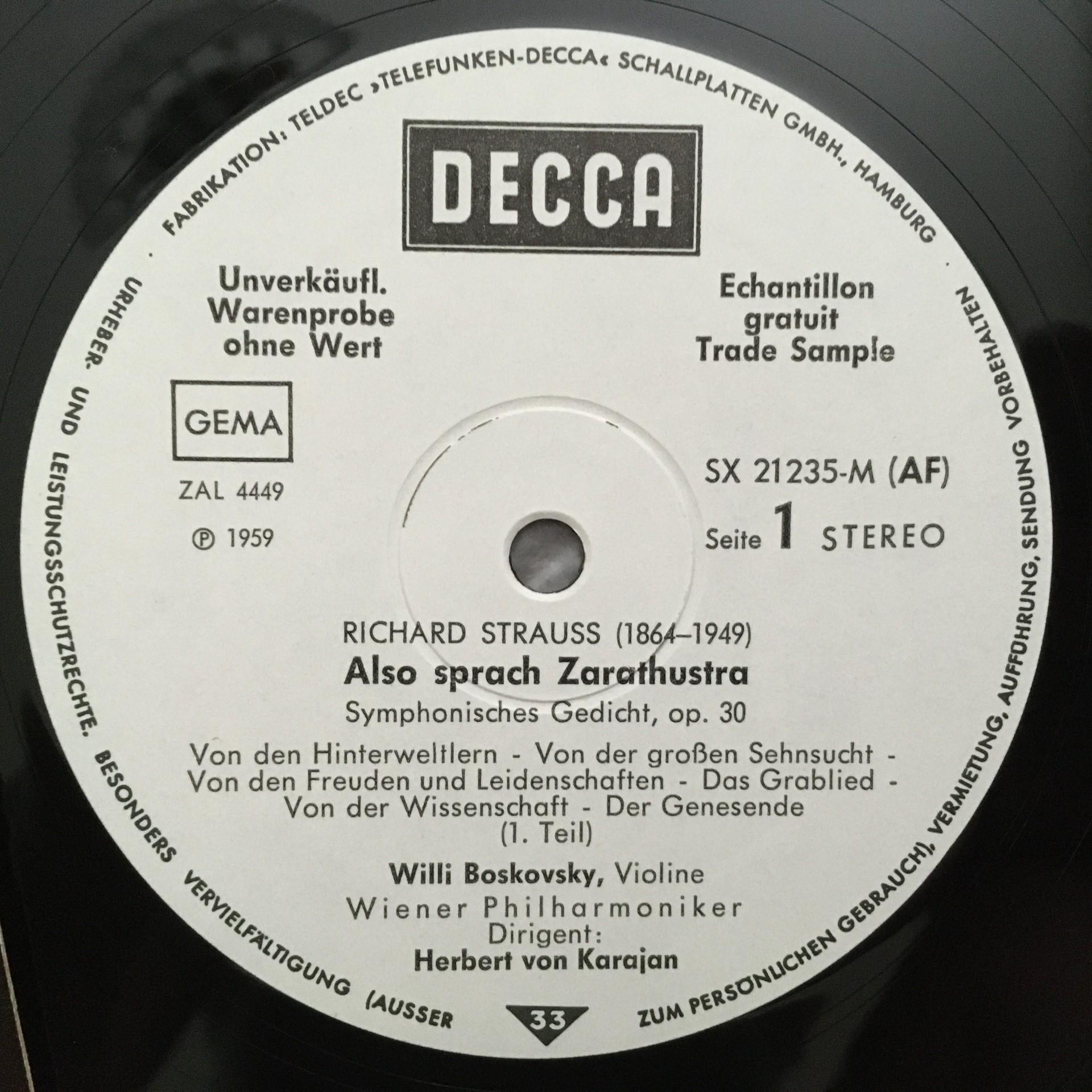 T032 R. Strauss Also speaks Zarathustra Karajan VPO DECCA 6.41808 AF St PROMO