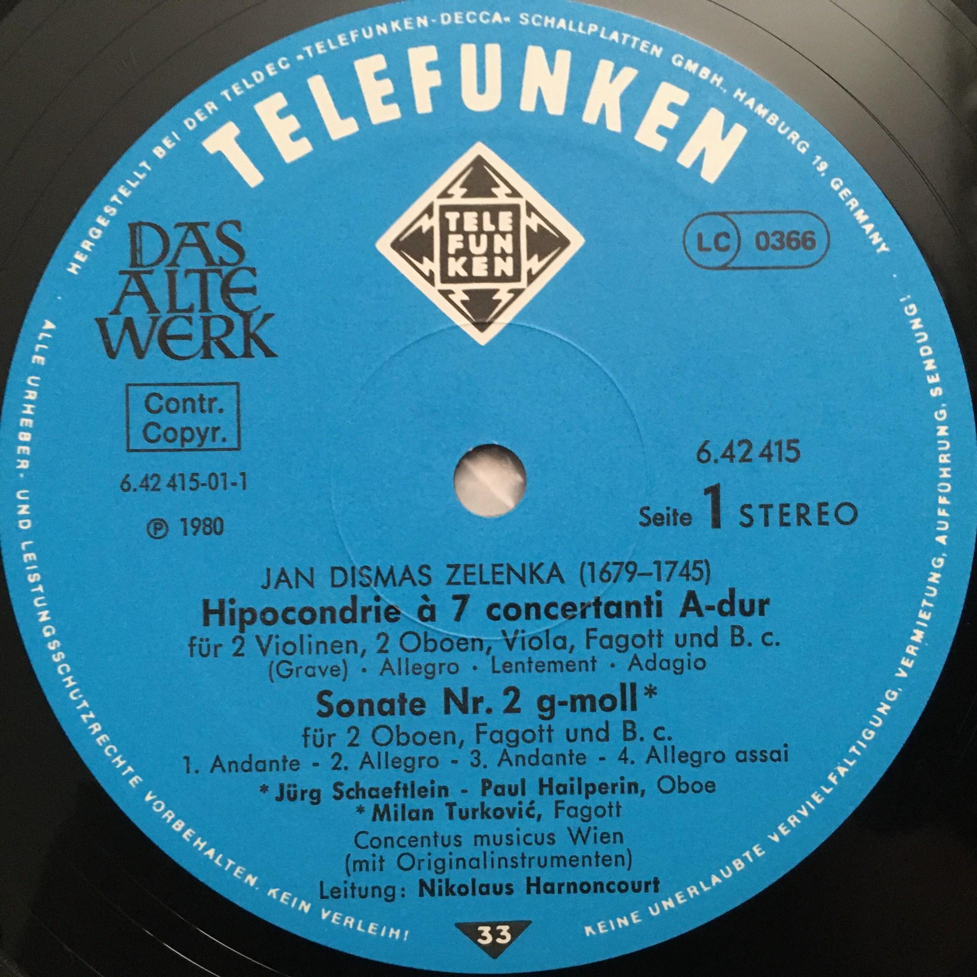 T039 Zelenka Hipocondrie Overture Sonata Harnoncourt Telefunken 6.42415 AW Ster
