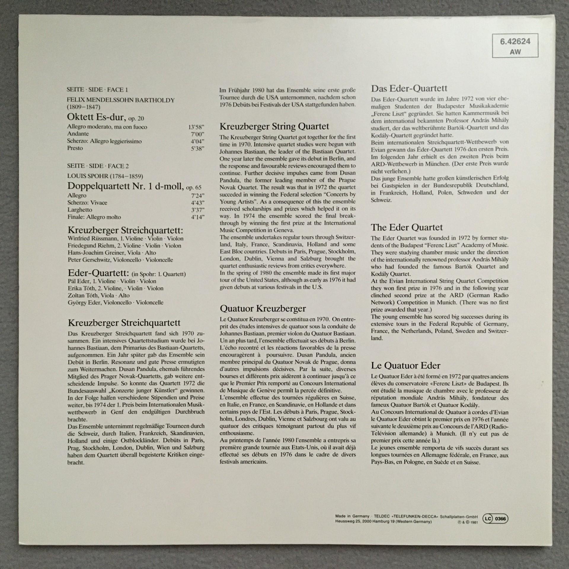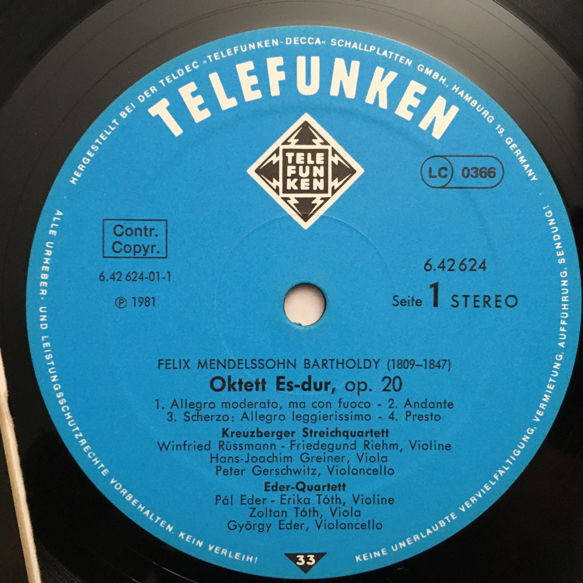 T049 Mendelssohn Octet Spohr Double Quartet Eder Telefunken 6.42624 AW Stereo