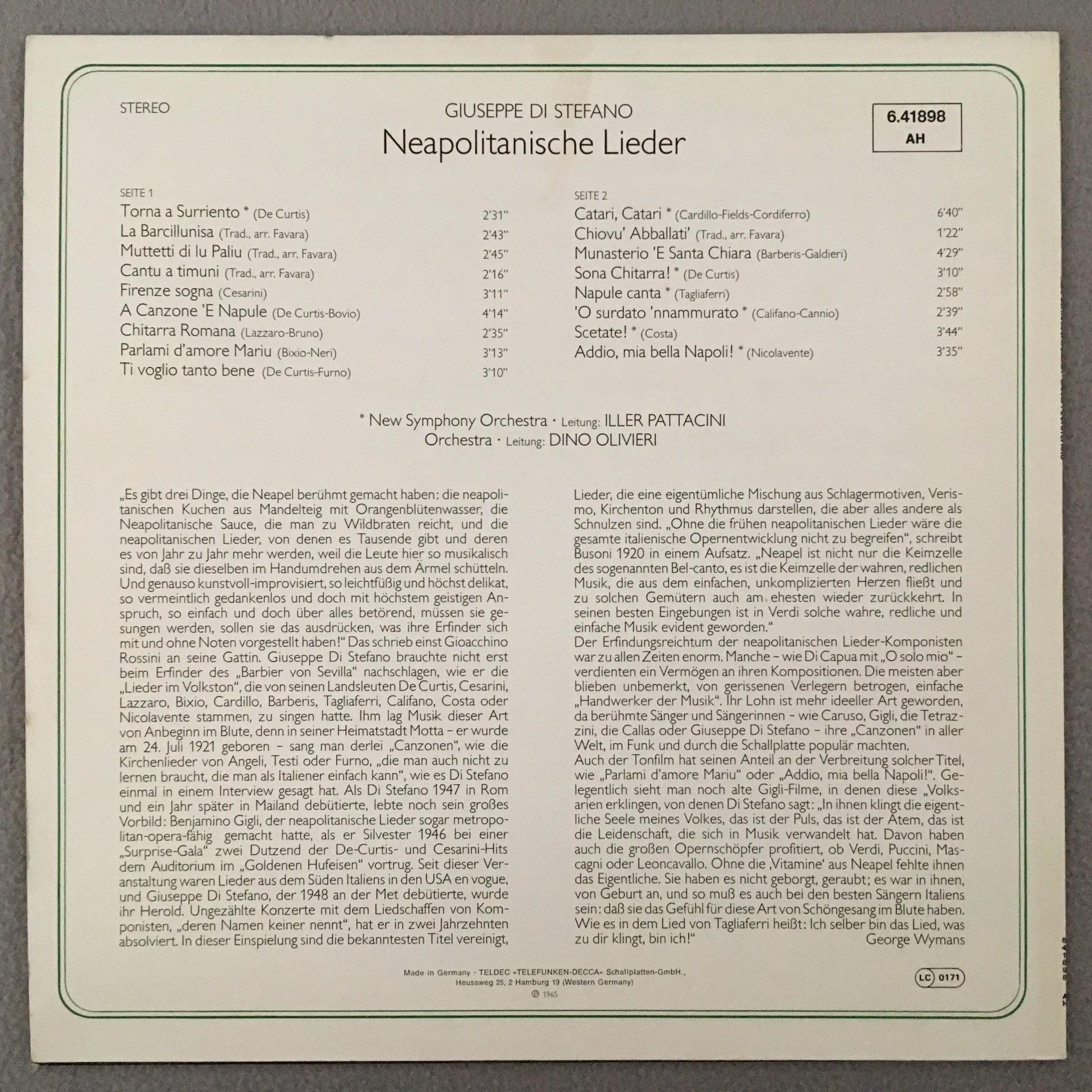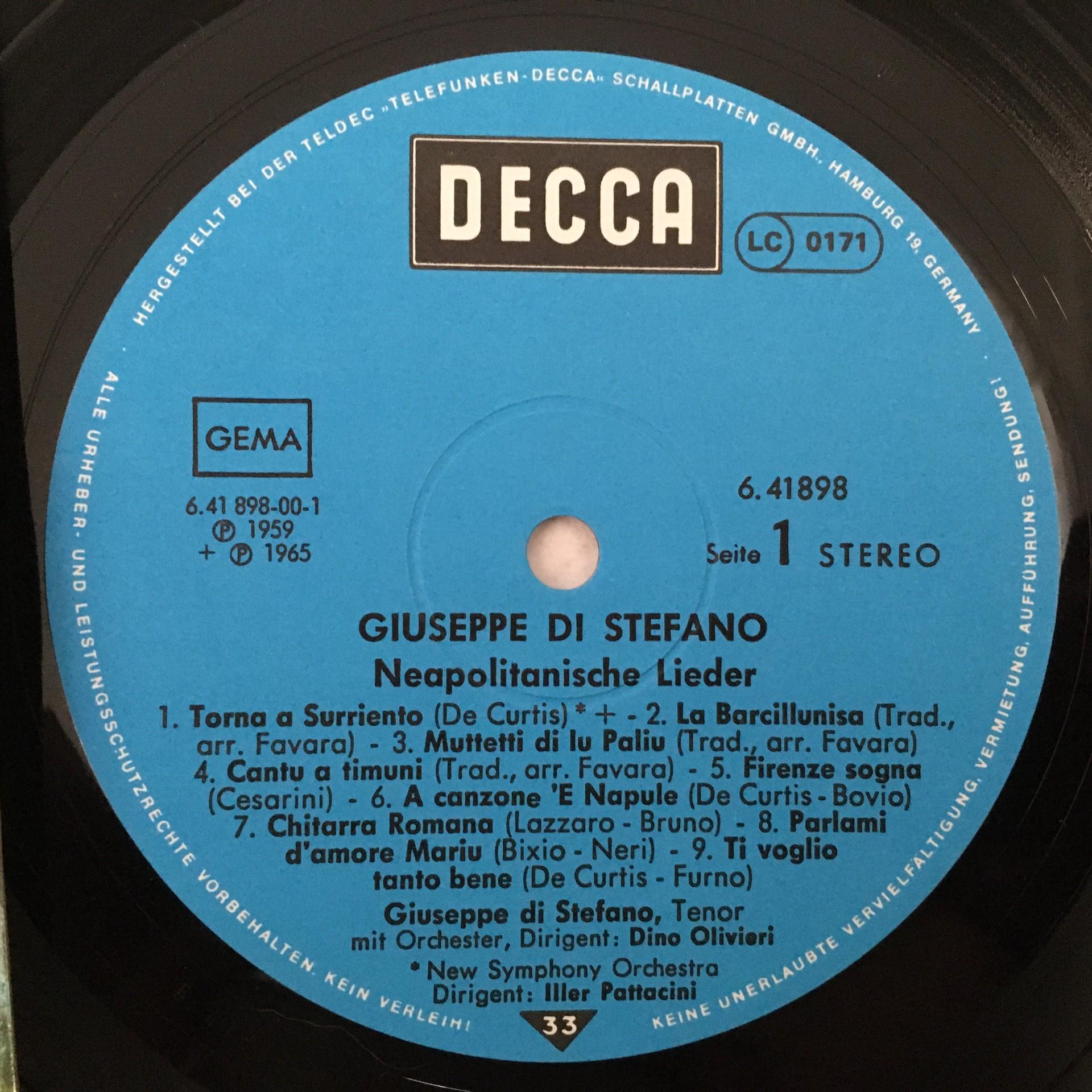 T061 Di Stefano Neapolitan Songs Olivieri DECCA 6.41898 AH Stereo