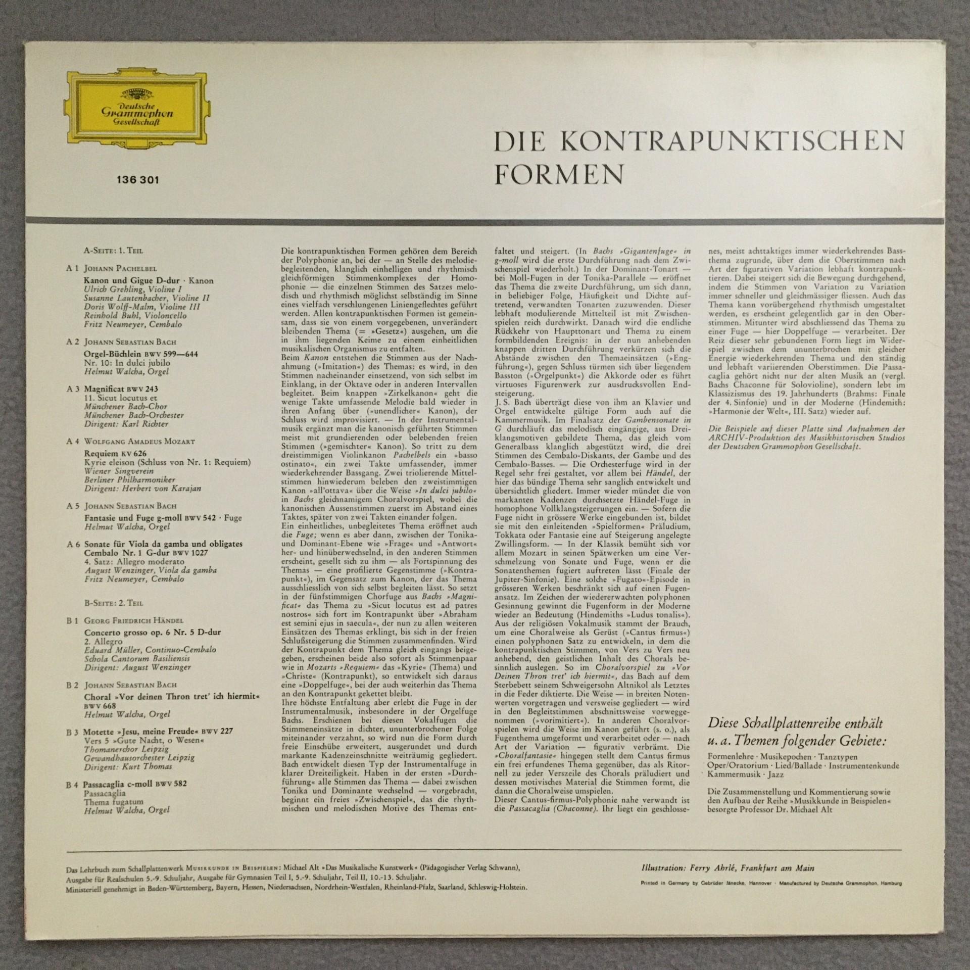 T080 Musicology in Examples Kontrapunktische Formen DGG 136 301 Stereo Tulip