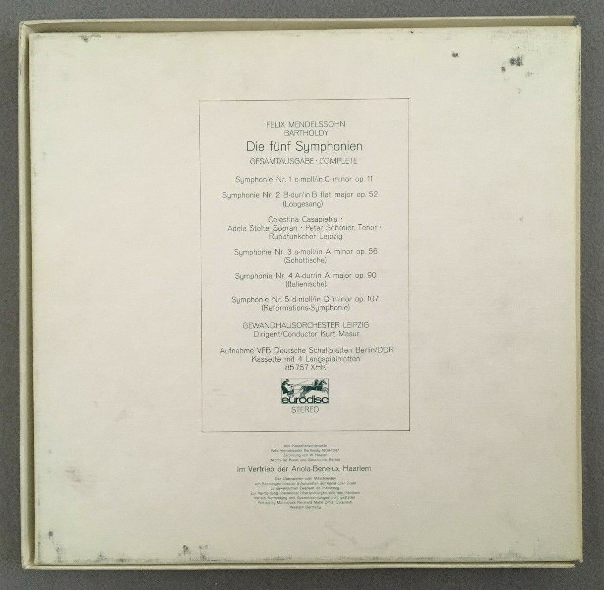 B771 Mendelssohn The 5 Symphonies Schreier Masur 4LP Eurodisc 85 757 XHK Stereo