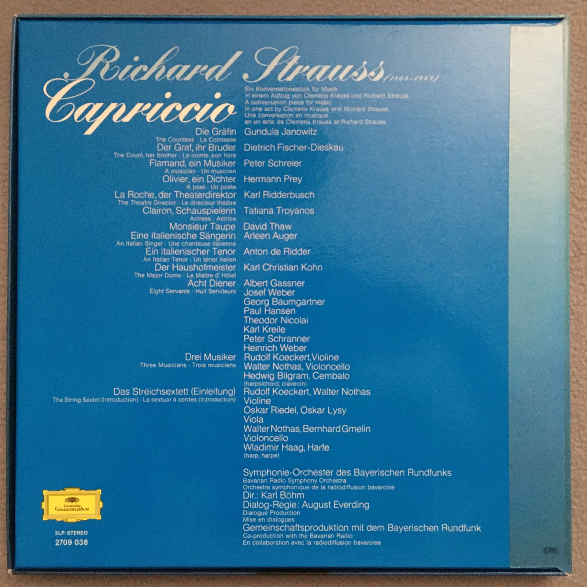 E187 R. Strauss Capriccio Fischer-Dieskau Janowitz Bohm 3LP DGG 2709 038 Stereo
