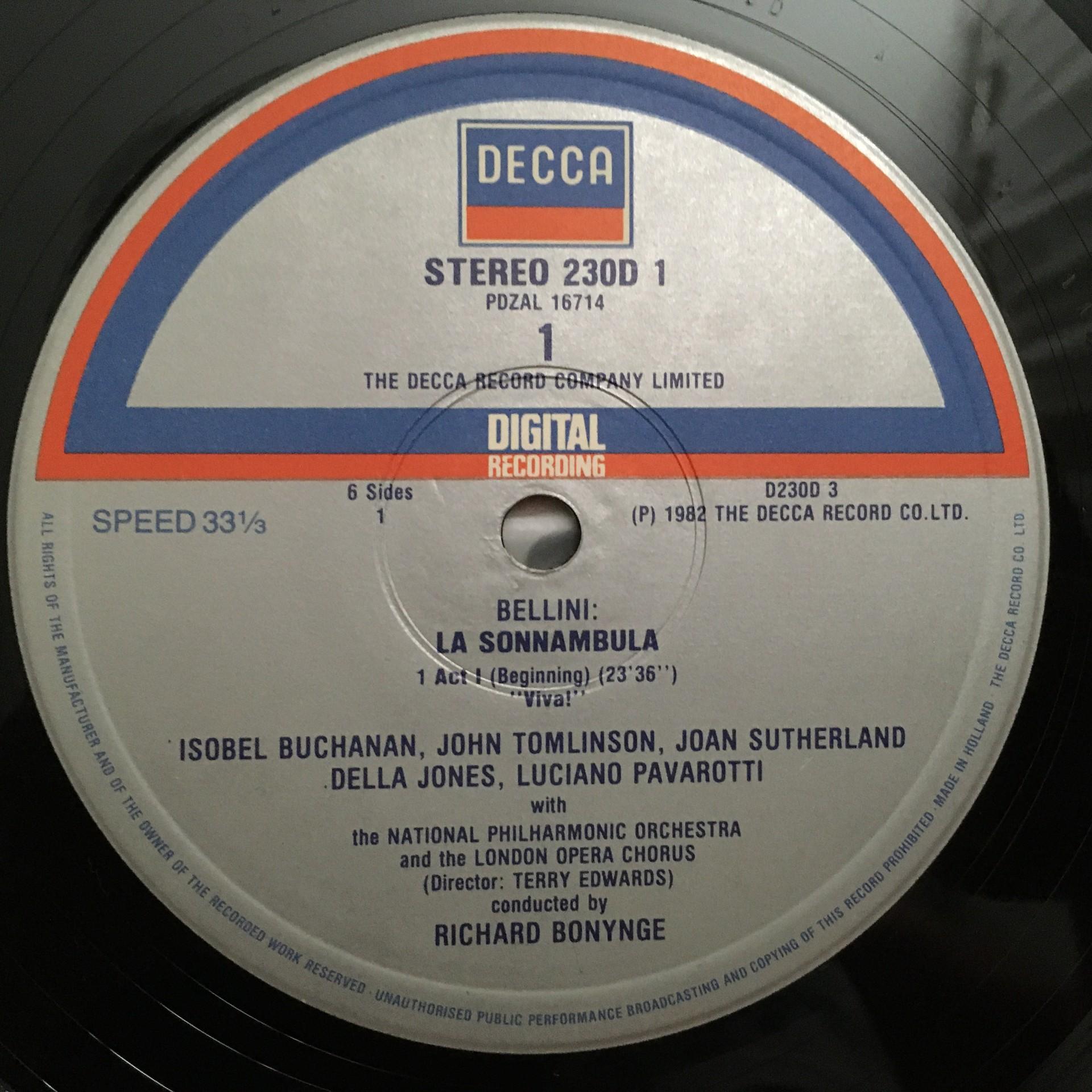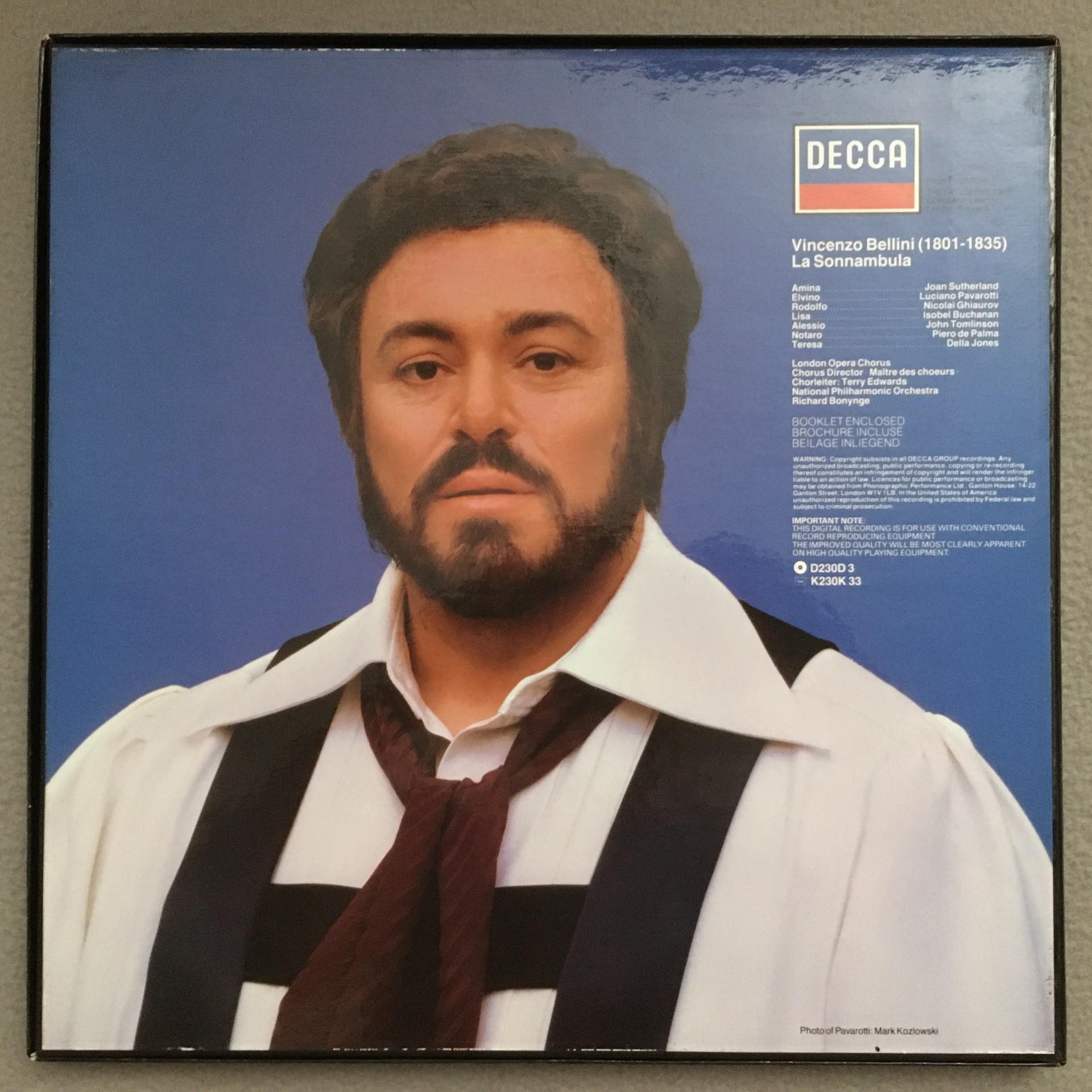 E189 Bellini La Sonnambula Pavarotti Bonynge 3LP DECCA D230D 3 Digital Stereo