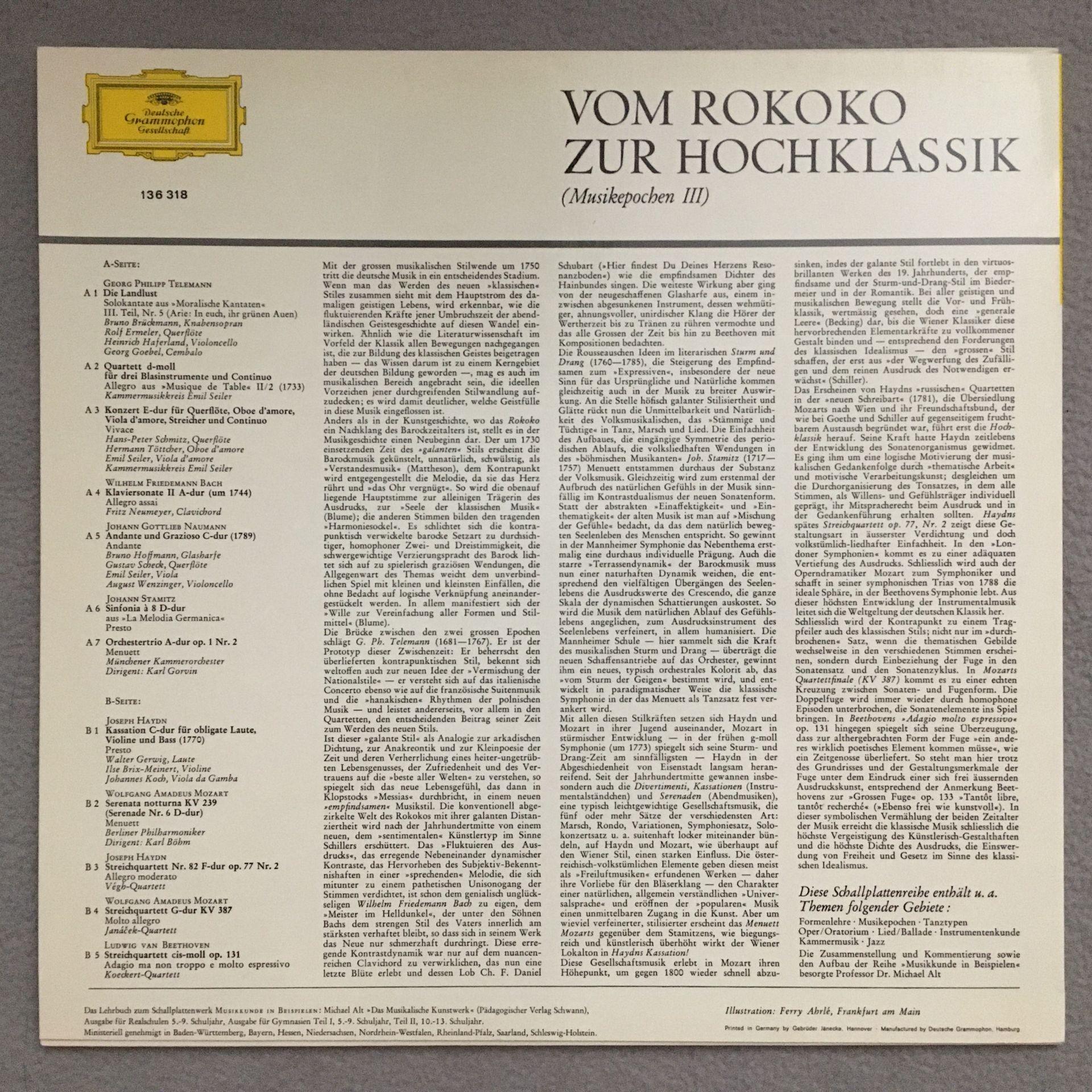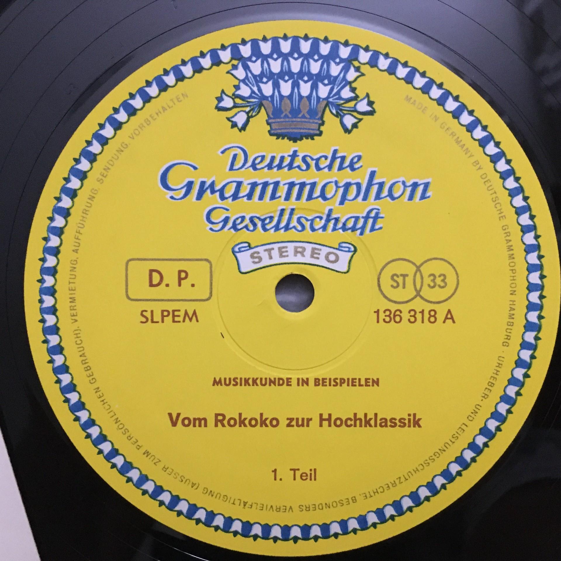 T090 Musicology in Examples From Rokoko to Hochklassik DGG 136 318 Stereo Tulip