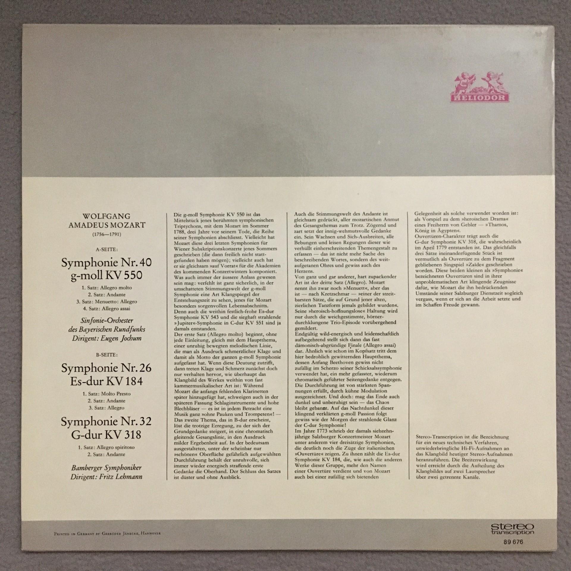 T100 Mozart Symphonies No.40 & 26 & 32 Jochum Lehmann Heliodor 89 676 Stereo