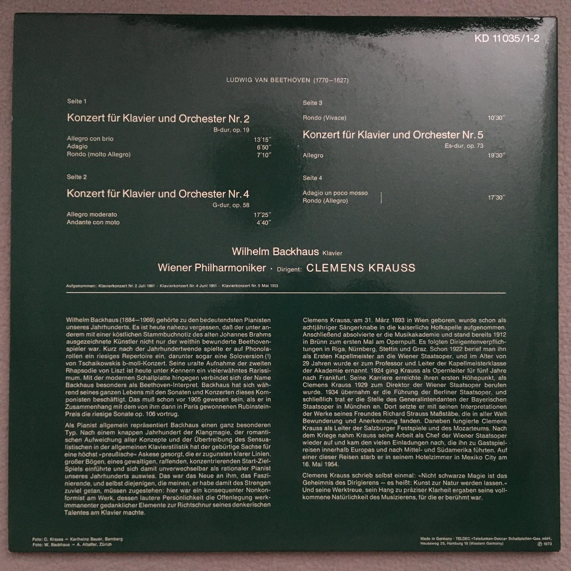 T106 Beethoven Piano Concertos Backhaus Krauss VPO 2LP DECCA KD 11 035/1-2 St