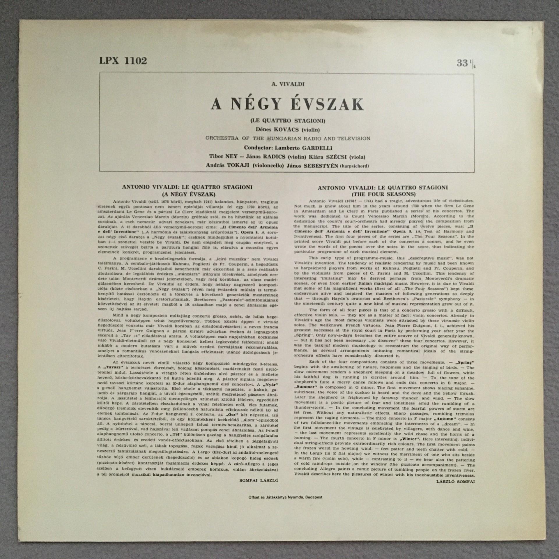 T108 Vivaldi The 4 Seasons Radics Kovacs Gardelli Qualiton LPX 1102 Stereo