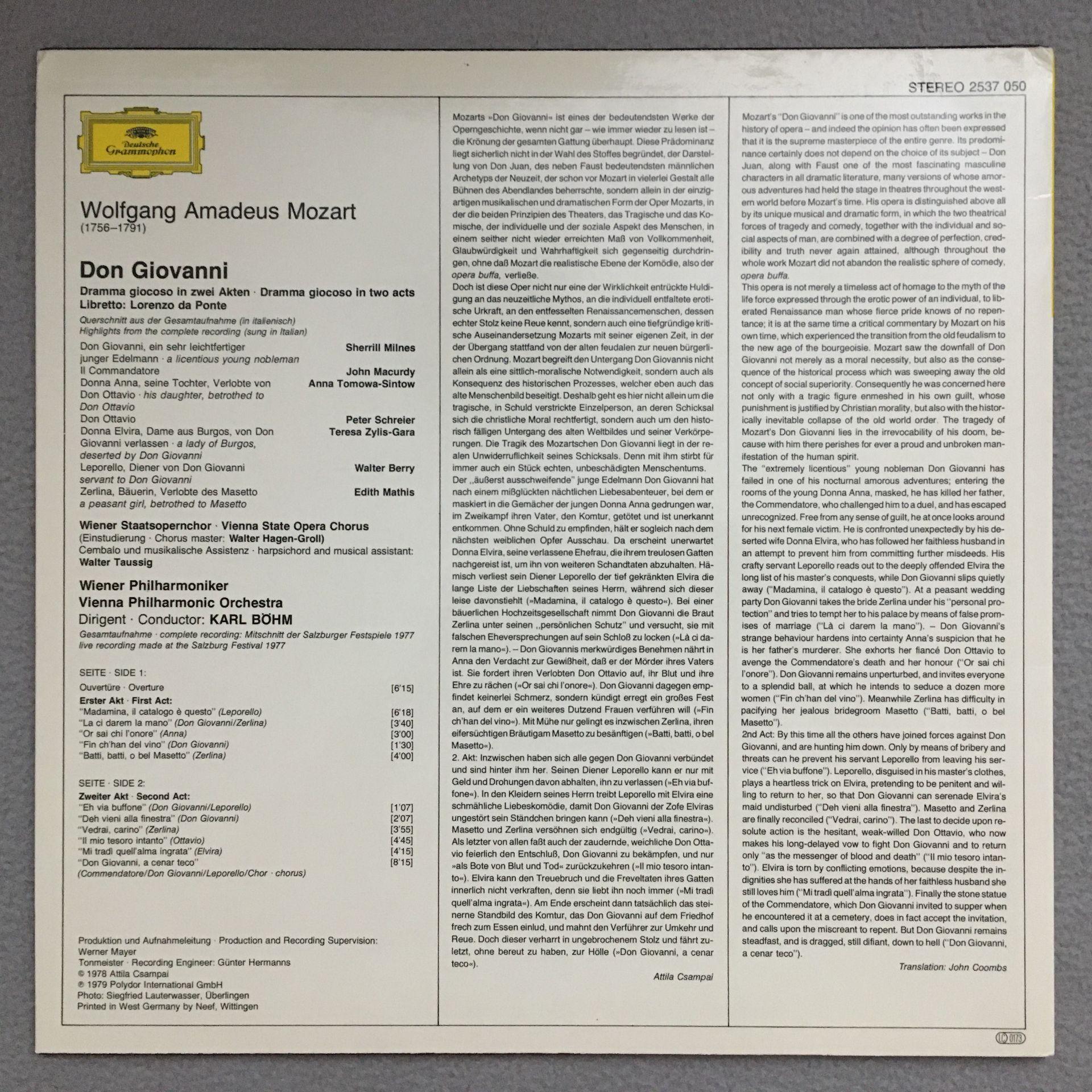 T116 Mozart Don Giovanni Mathis Milnes Schreier Bohm VPO DGG 2537 050 Stereo