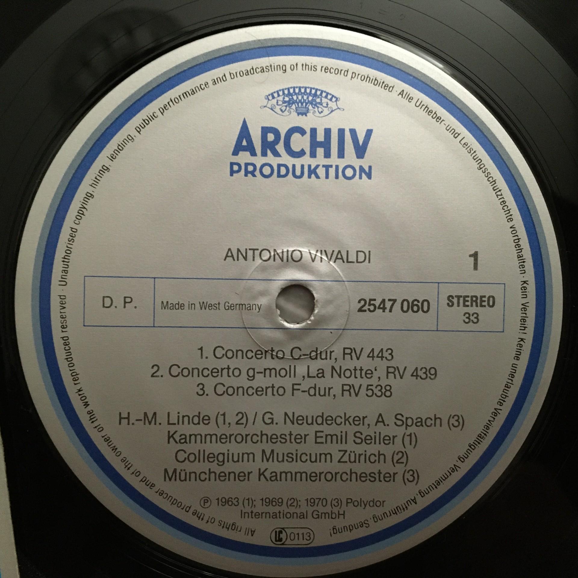T126 Vivaldi Wind Concertos Linde Seiler Stadlmair DGG Archiv 2547 060 Stereo