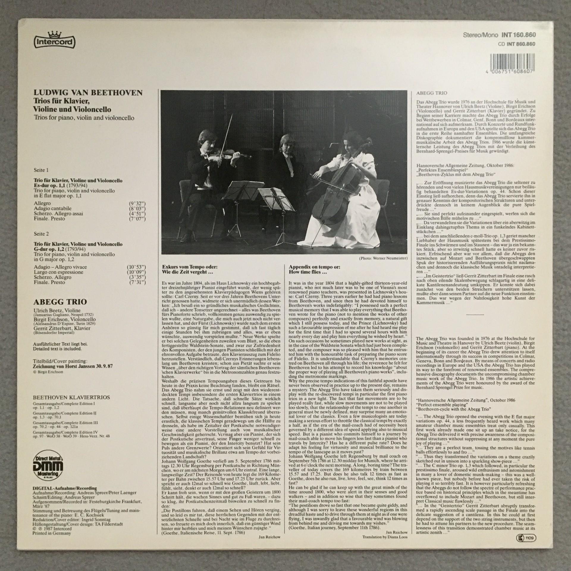 T129 Beethoven Piano Trios I Abegg Trio Intercord INT 160.860 Stereo