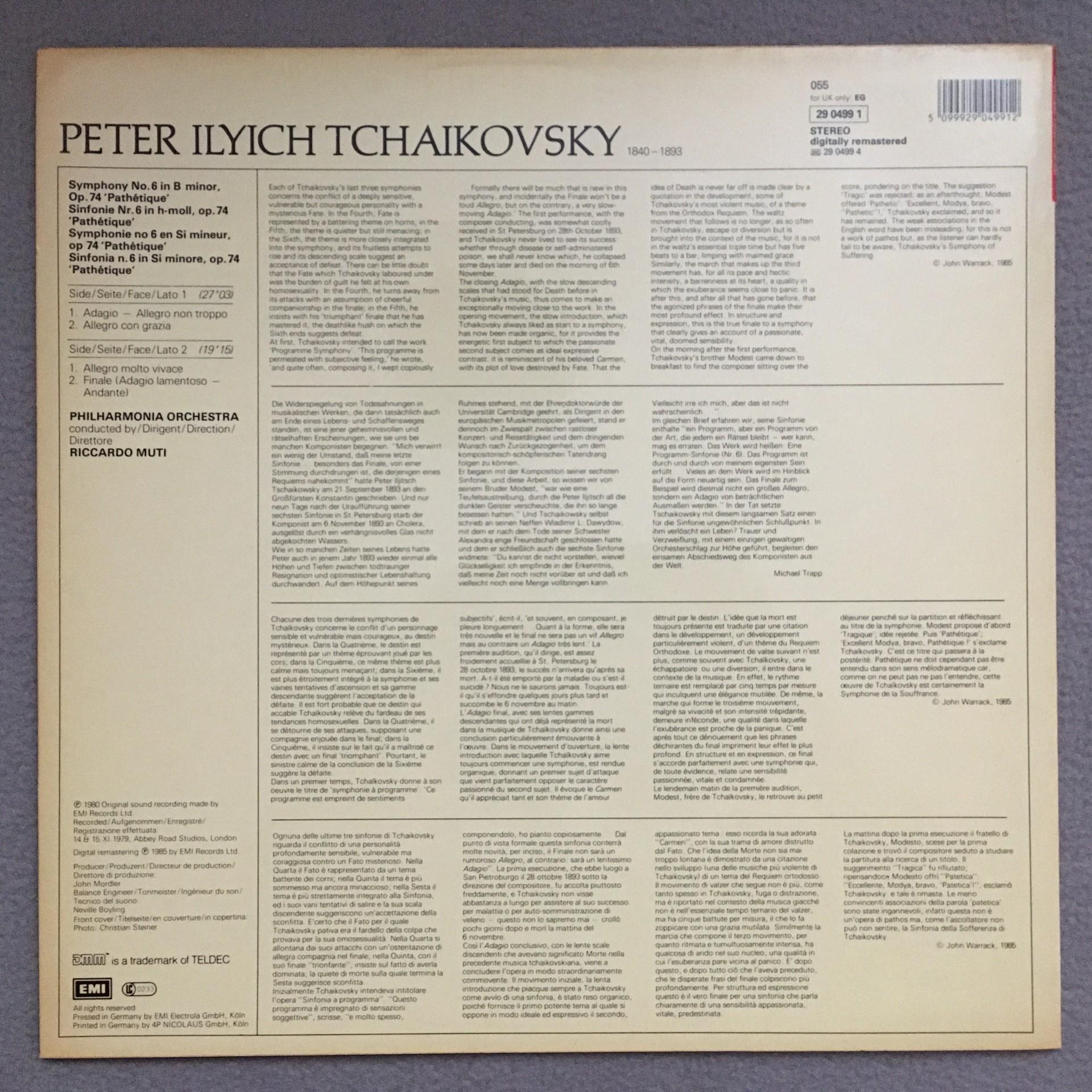 T132 Tchaikovsky Symphony No.6 Muti LPO EMI 29 0499 1 Digital Stereo