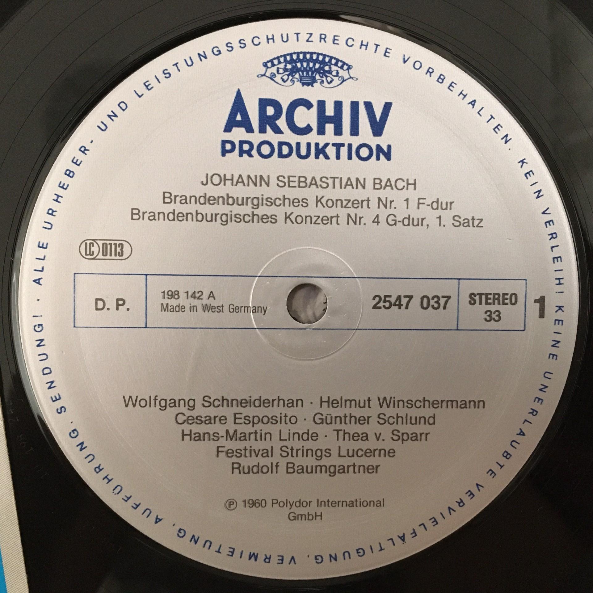 T137 Bach Brandenburg Concertos Schneiderhan Baumgartner DGG Archiv 2547 037 St