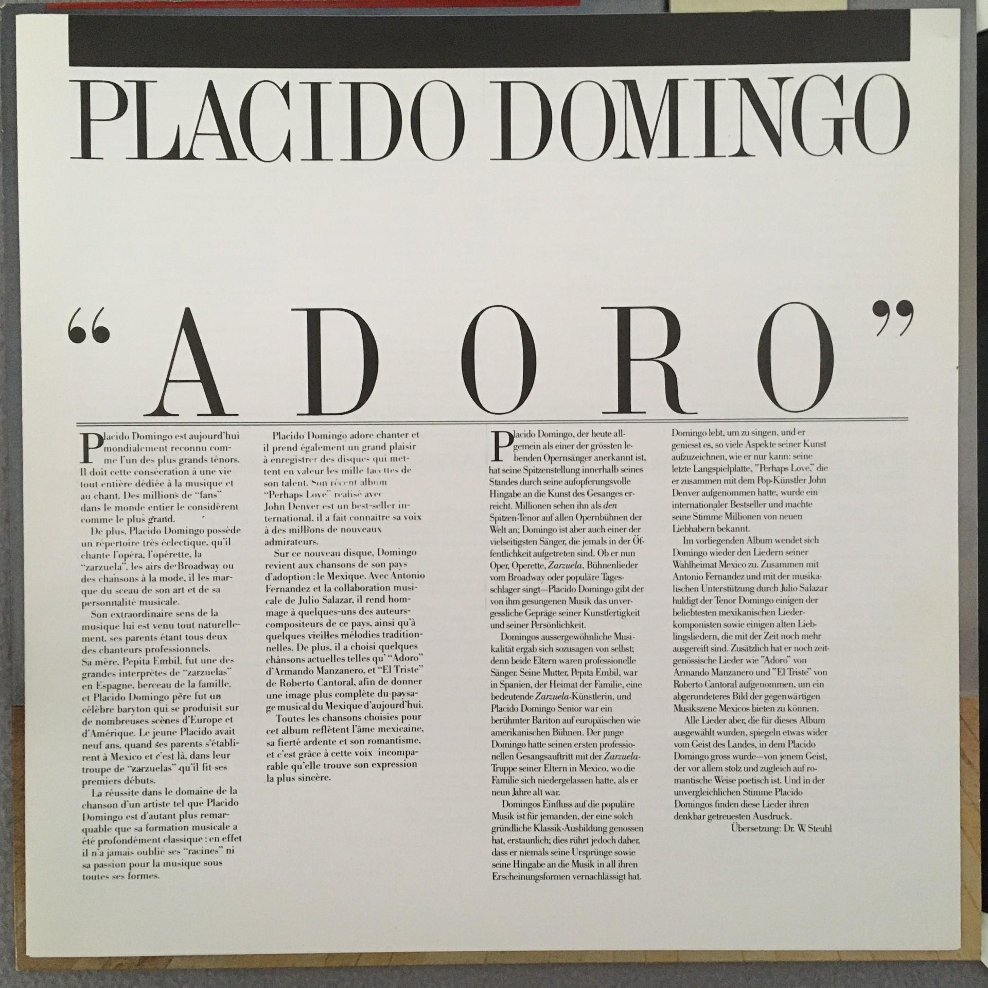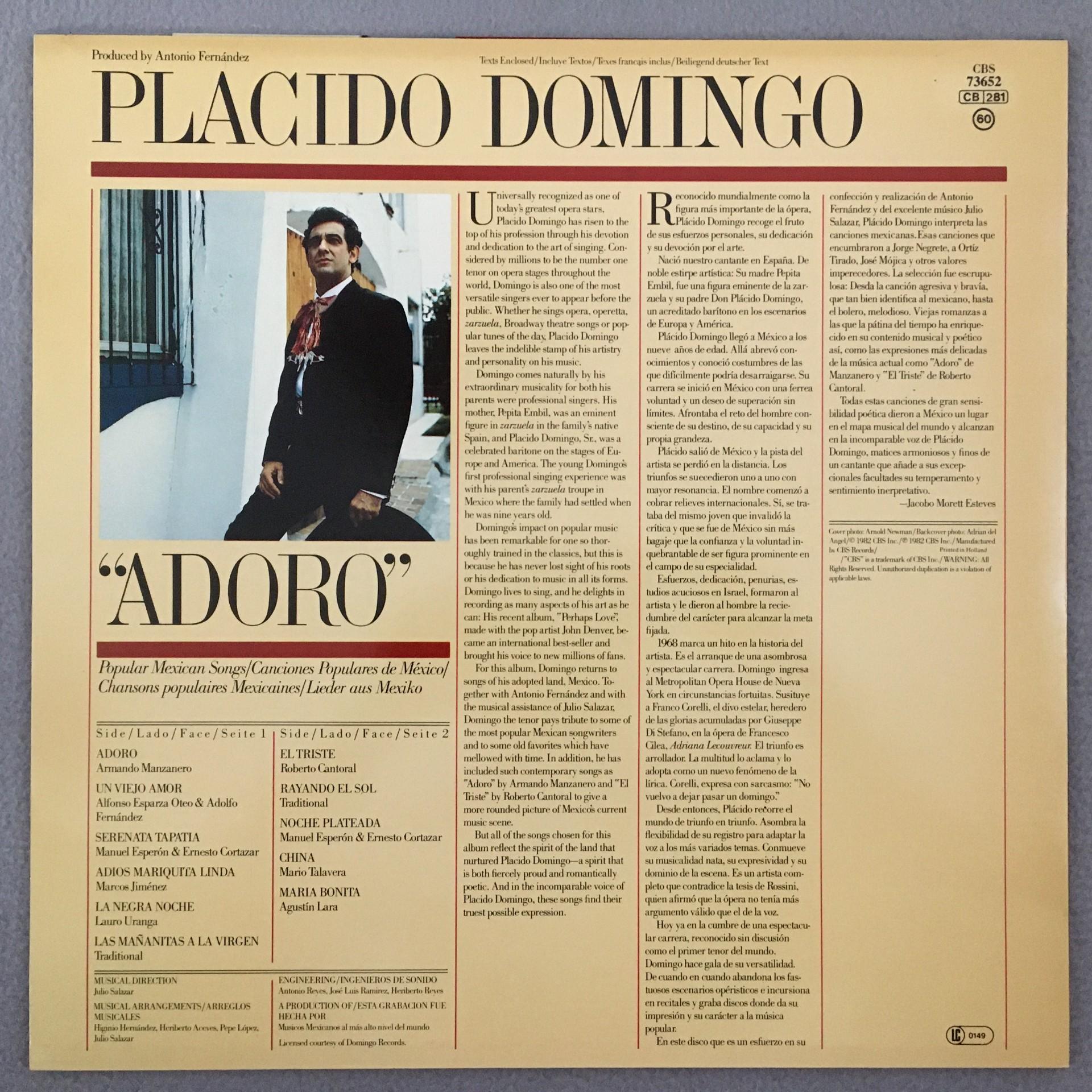 T149 Placido Domingo Adoro CBS 73652 Stereo