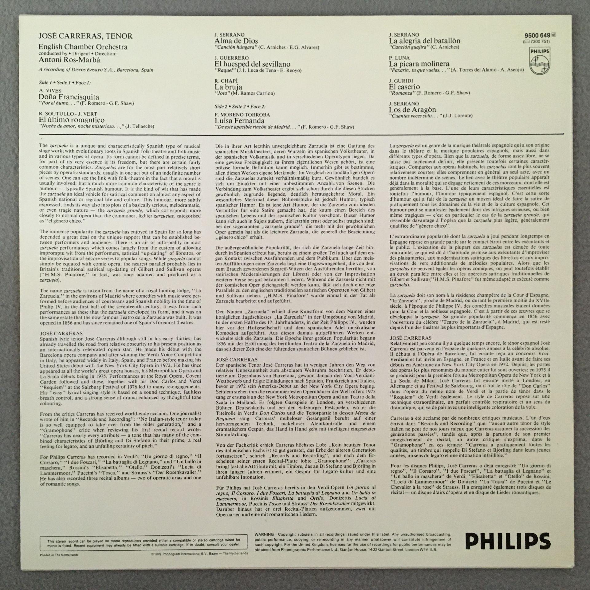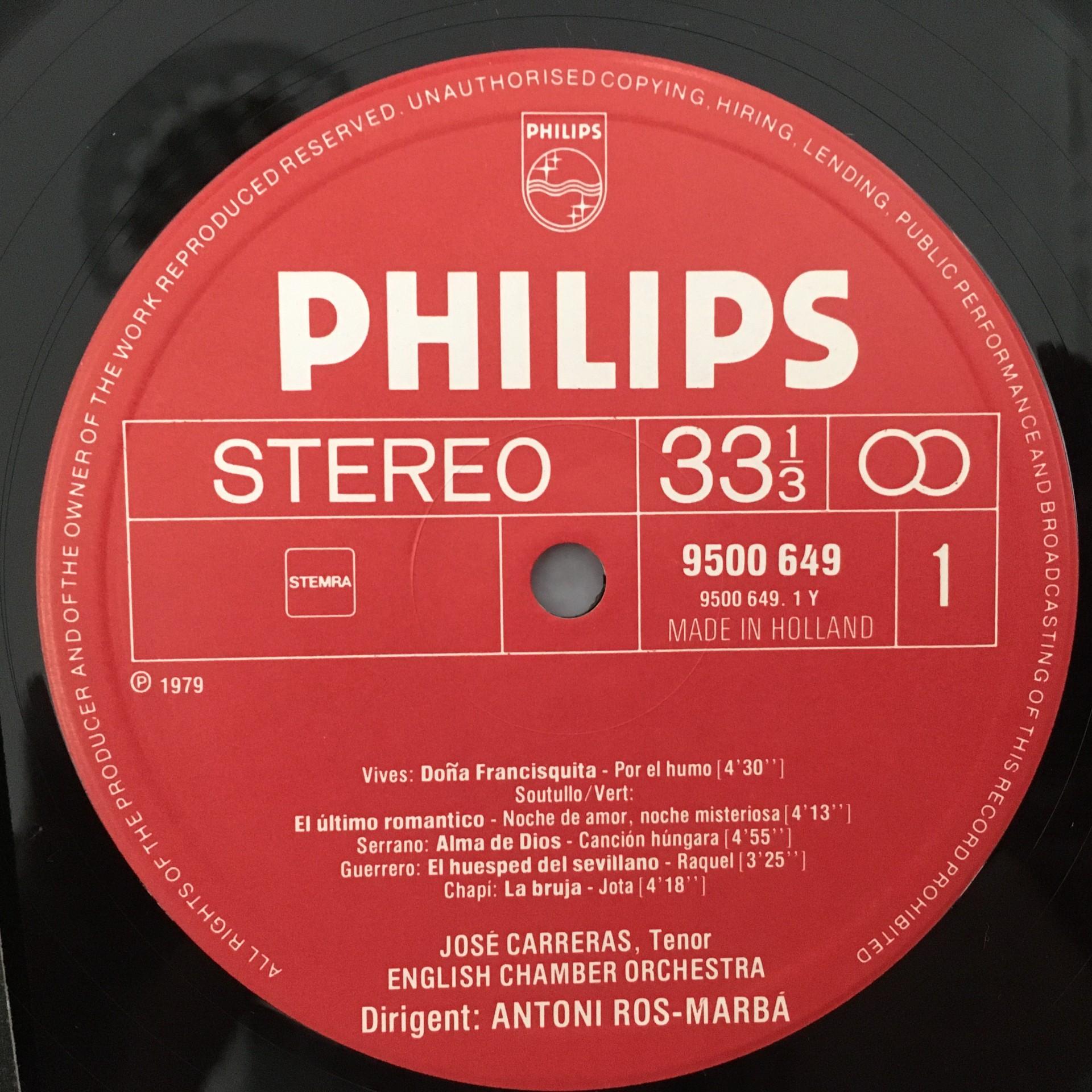 T150 Jose Carreras sings Spanish Arias Zarzuela Philips 9500 649 Stereo