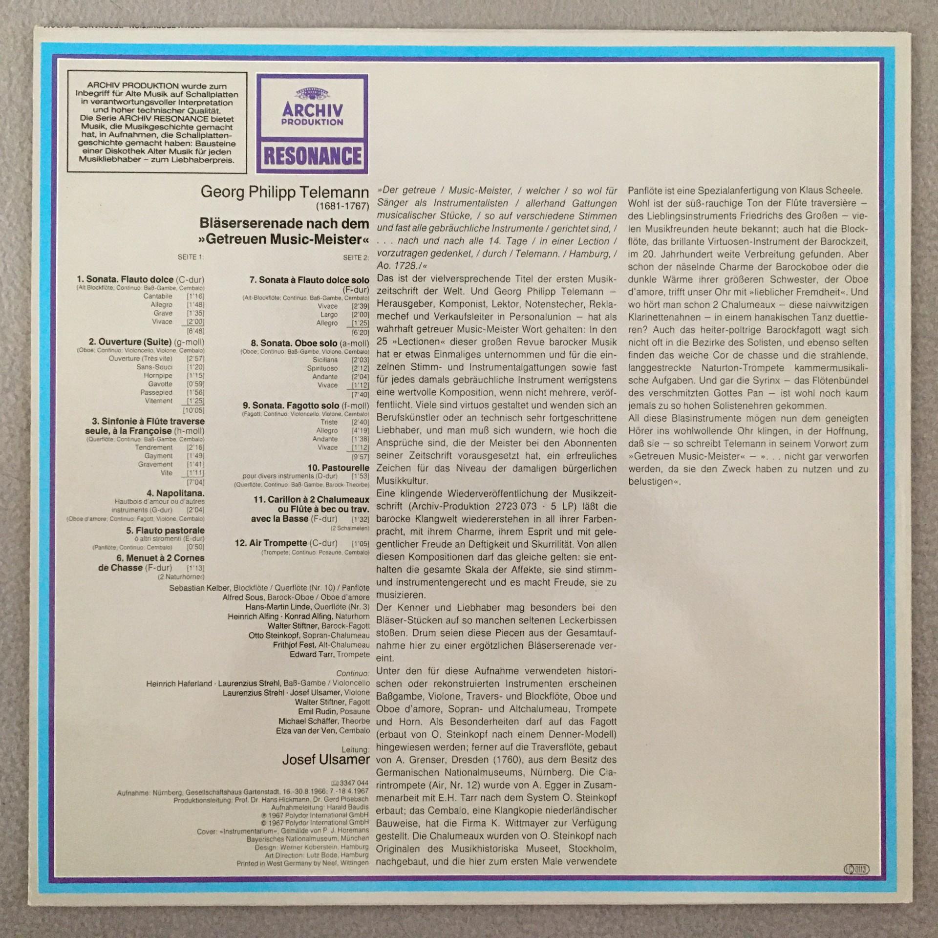 T153 Telemann Wind Serenade Kelber Ulsamer DGG Archiv 2547 044 Stereo