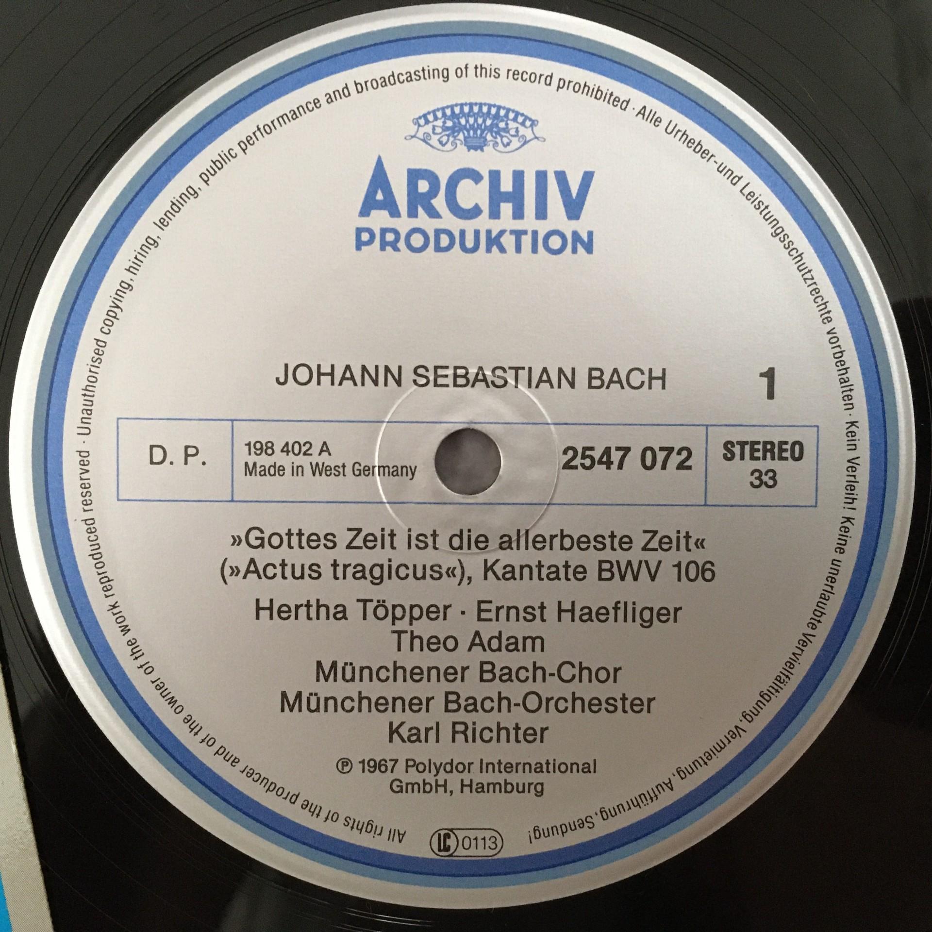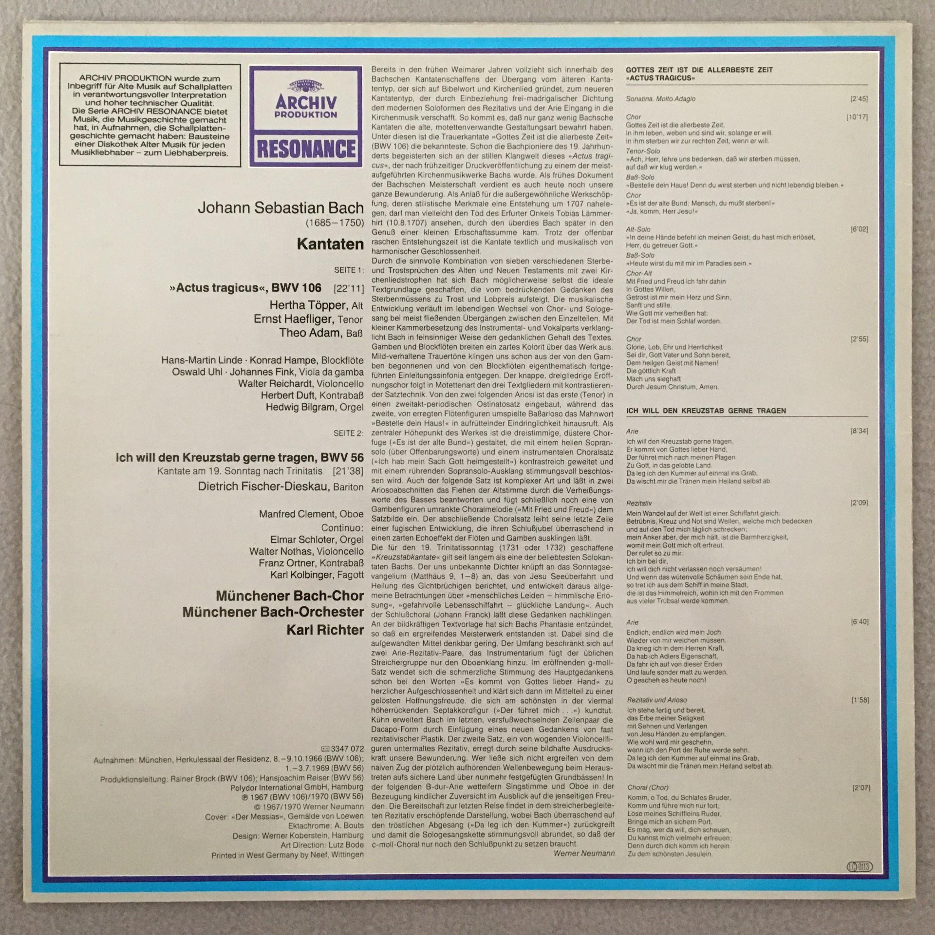 T154 Bach Cantatas Fischer-Dieskau Adam Richter DGG Archiv 2547 072 Stereo