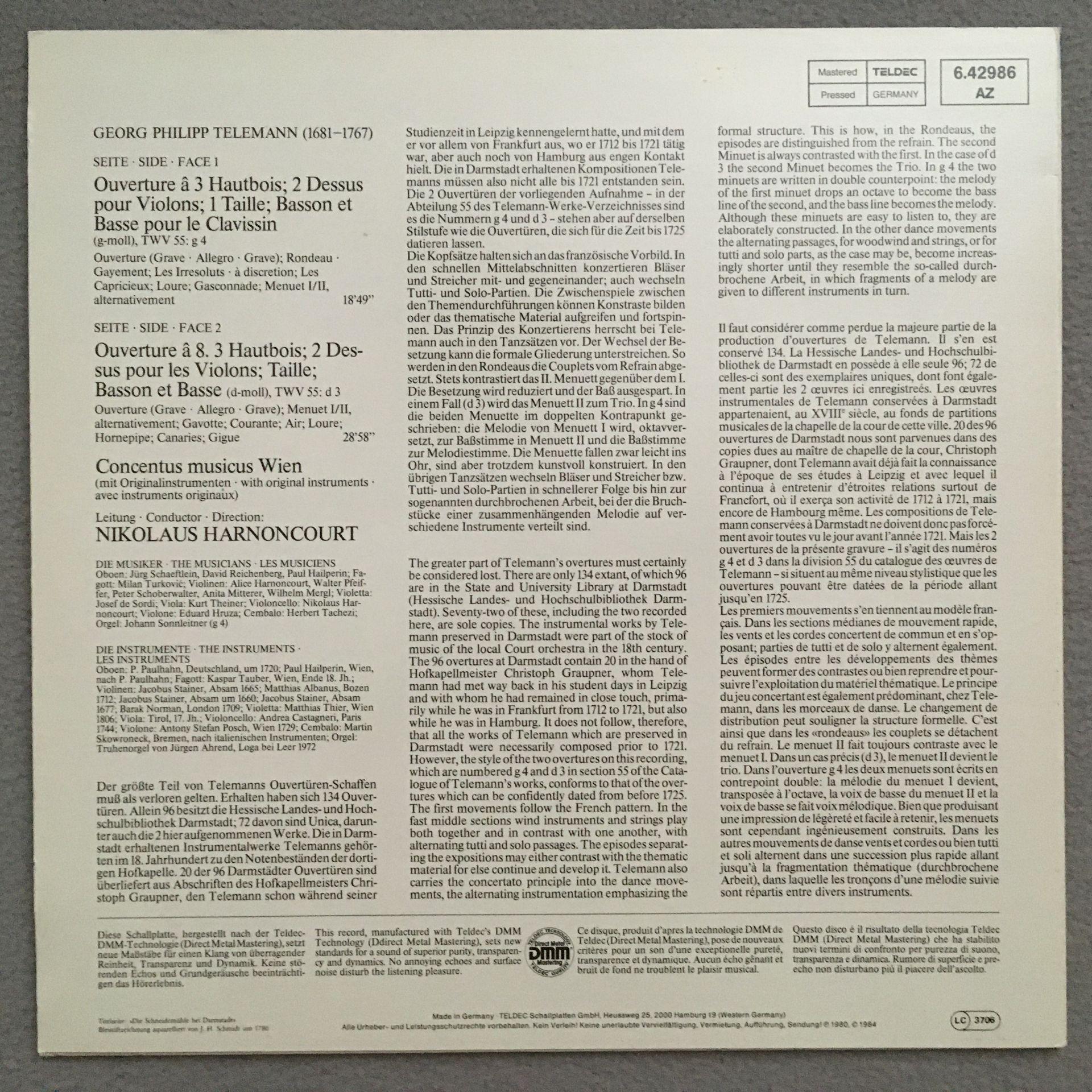 T163 Telemann Overtures Harnoncourt Teldec 6.42986 AZ Digital Stereo