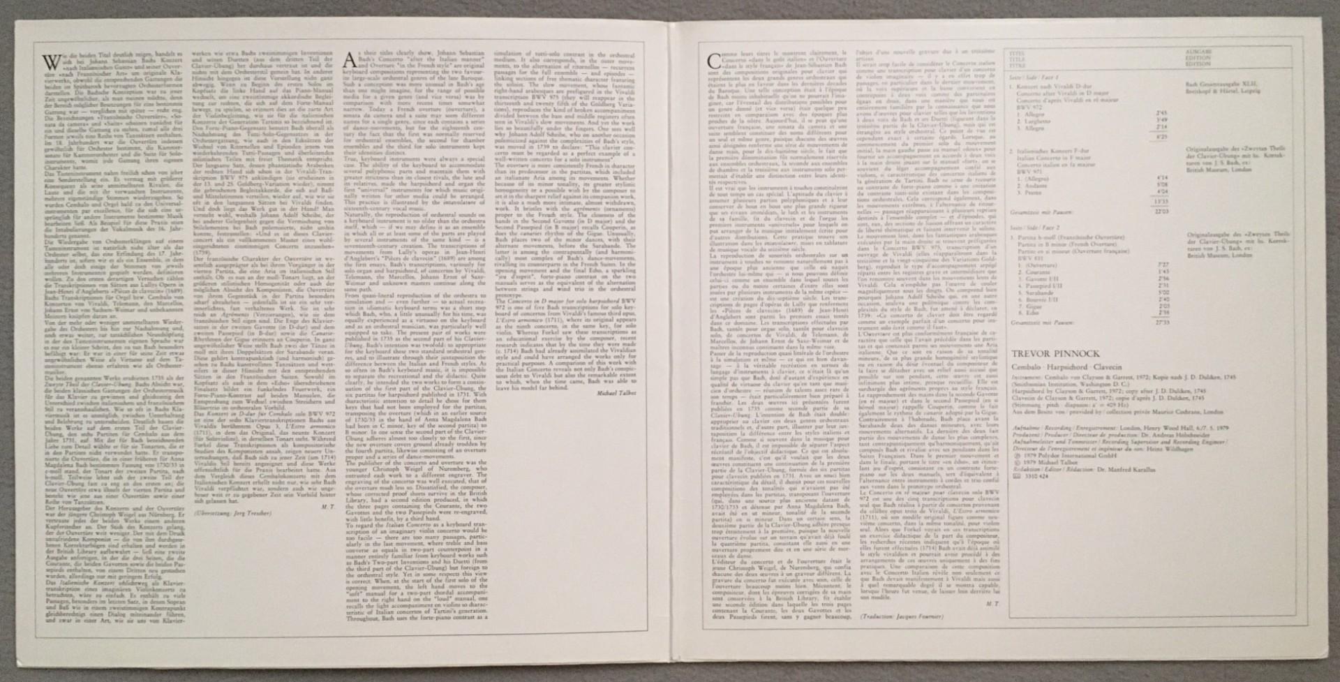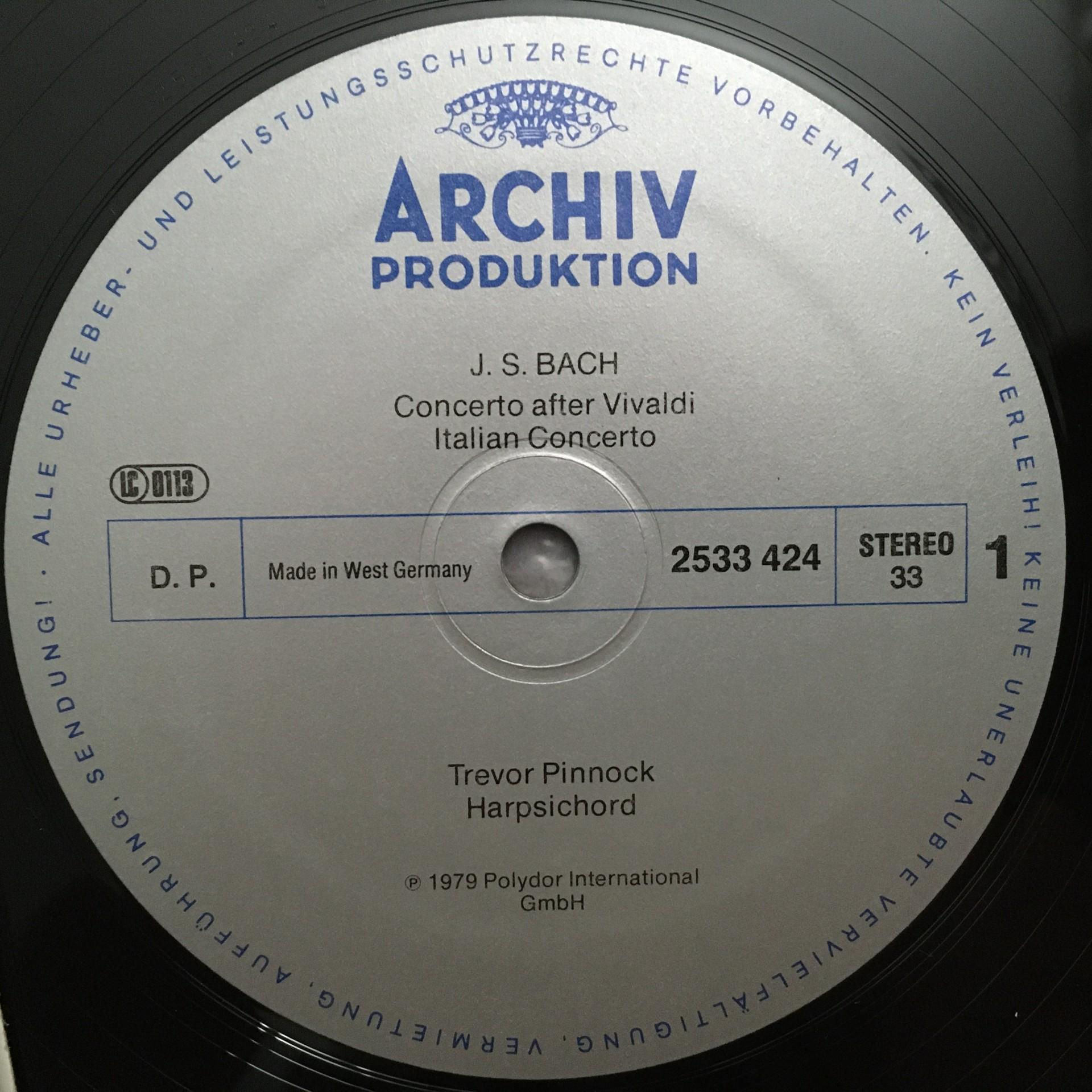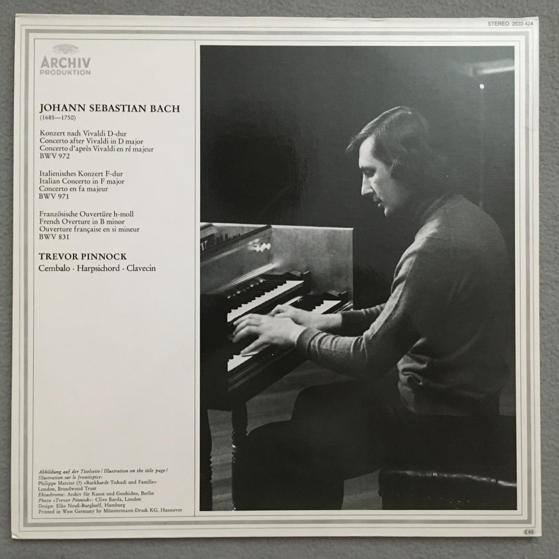 T165 Bach Concertos Overture Pinnock Harpsichord DGG Archiv 2533 424 Stereo