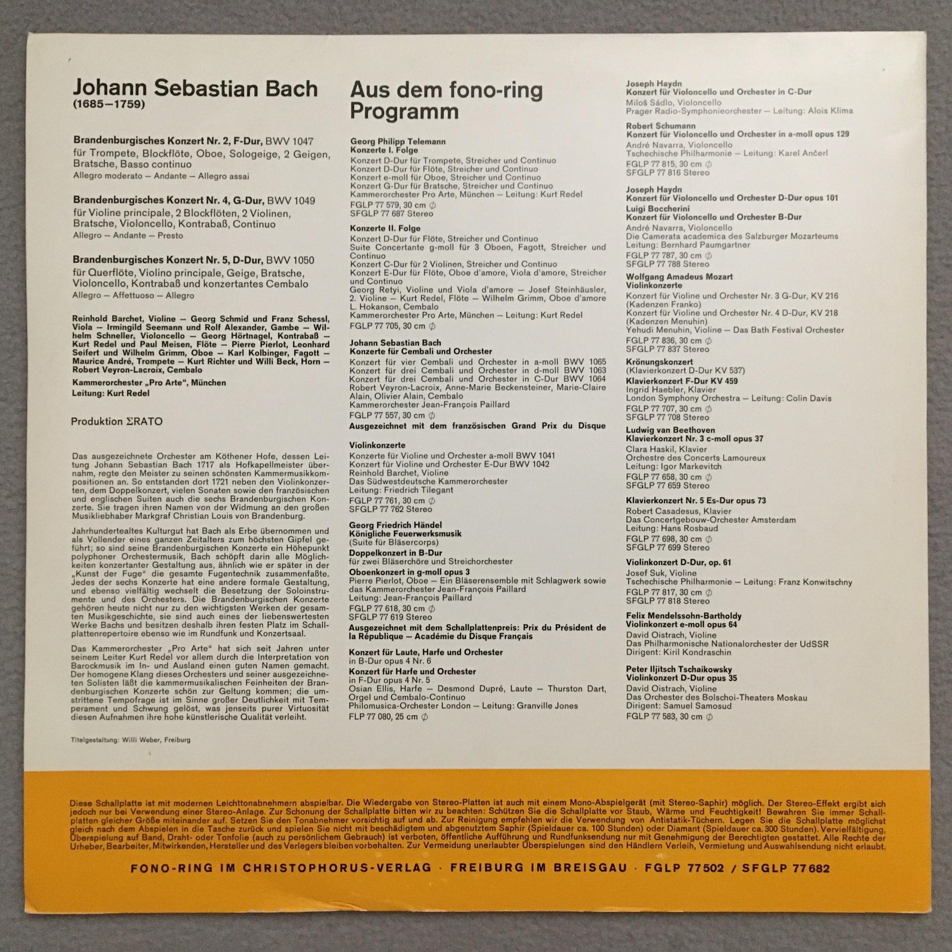 T172 Bach Brandenburg Concertos Redel Fono-Ring SFGLP 77 682 Stereo