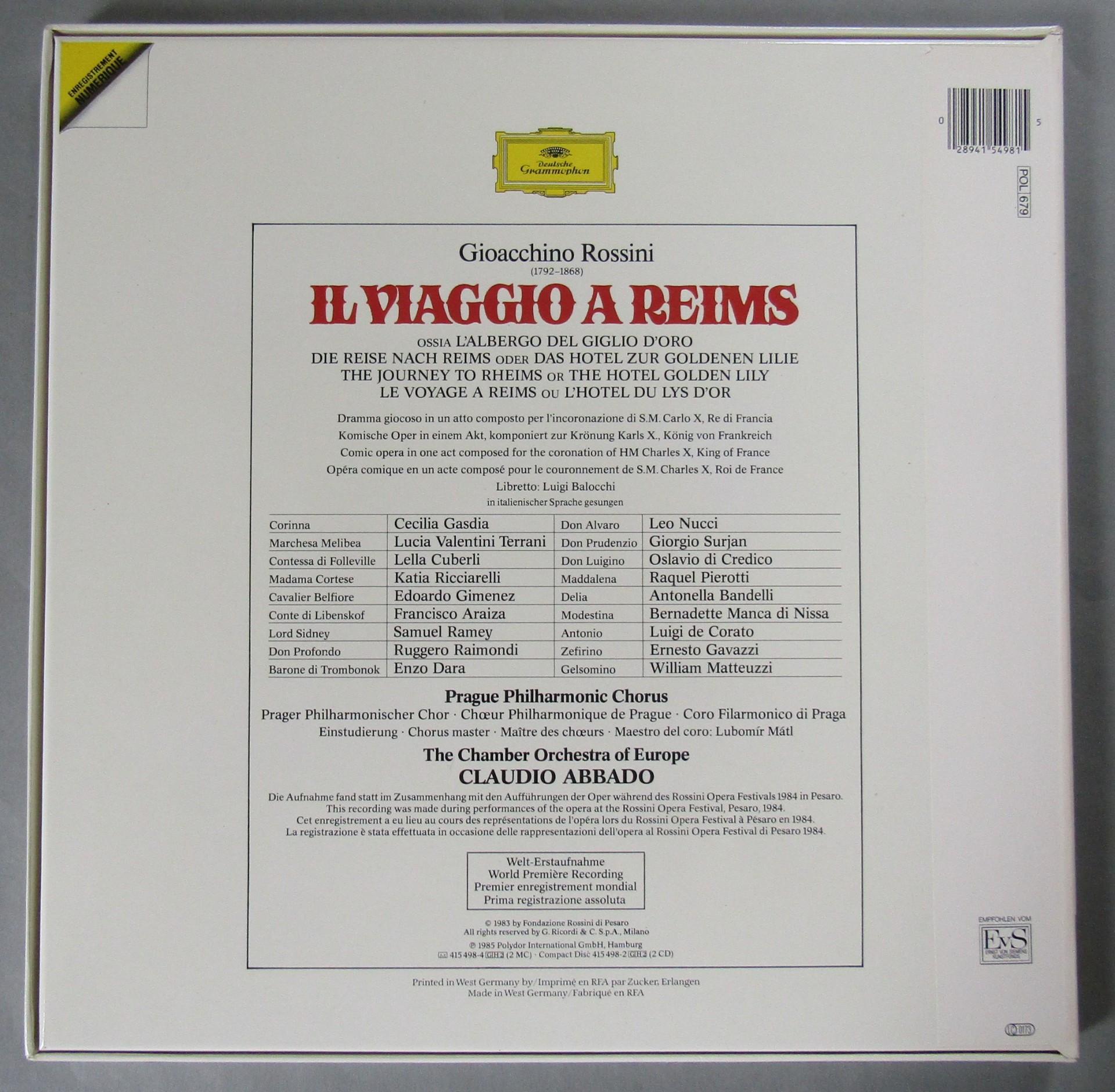 G194 Rossini il Viaggio a Reims Ricciarelli Abbado 3LP DGG 415 498-1 Digital St