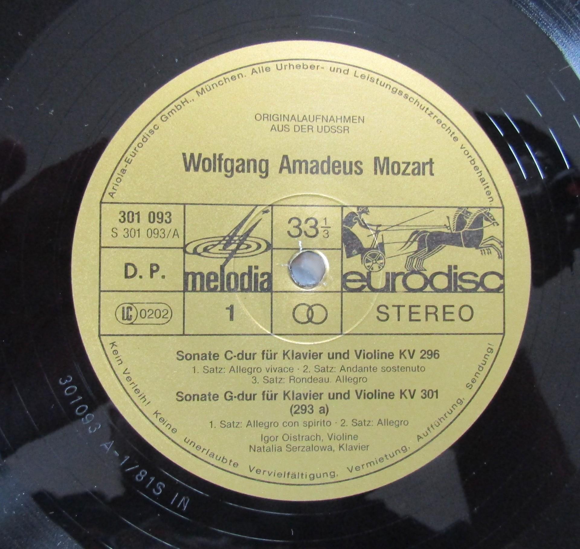 G524 Mozart Sonatas Oistrakh Serzalowa 5LP Eurodisc 301 098-445 Stereo