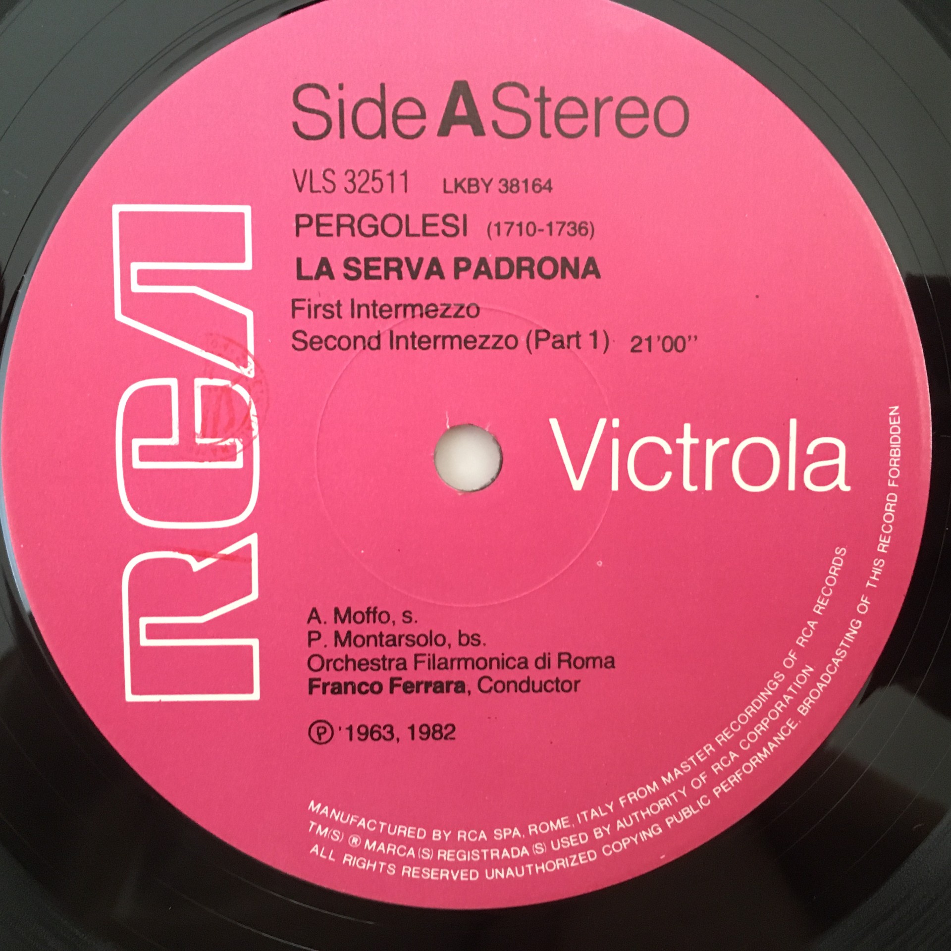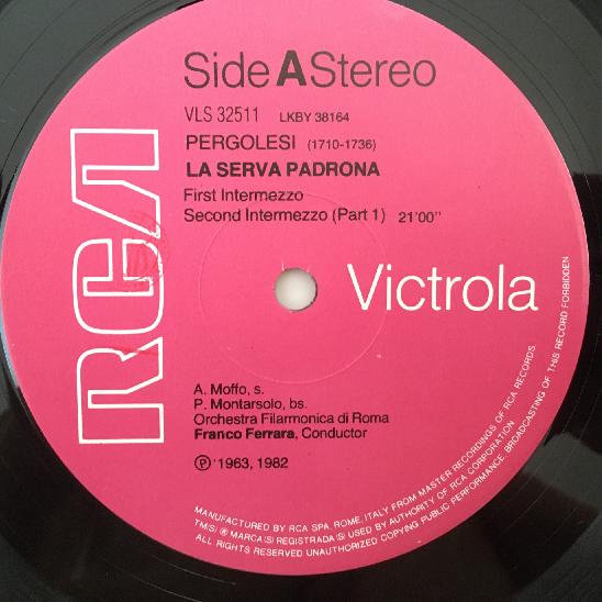 G444 Pergolesi La Serva Padrona Moffo Ferrara 1LP RCA VLS 32511 Stereo