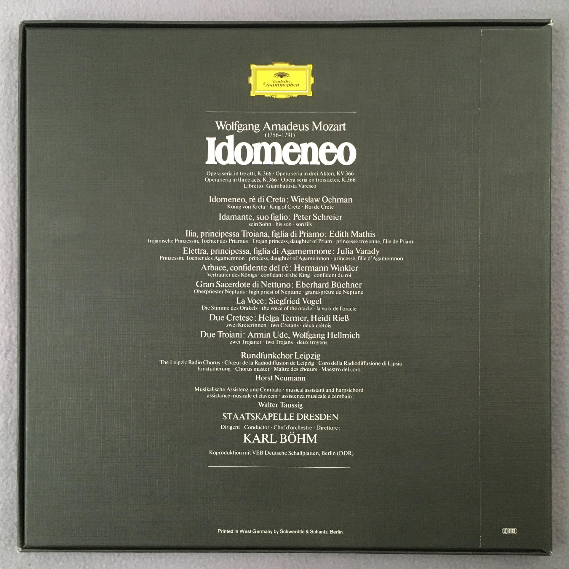 G611 Mozart Idomeneo Mathis Varady Schreier Bohm 4LP DGG 2711 023 Stereo