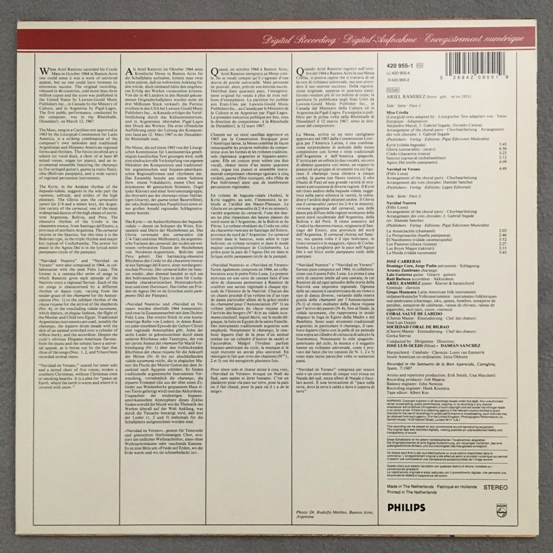 T193 Ramirez Misa Criolla Carreras Sanchez Philips 420 955-1 Digital Stereo