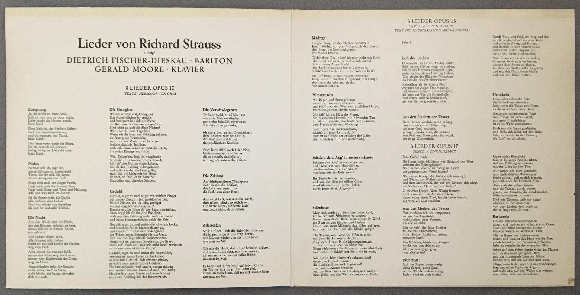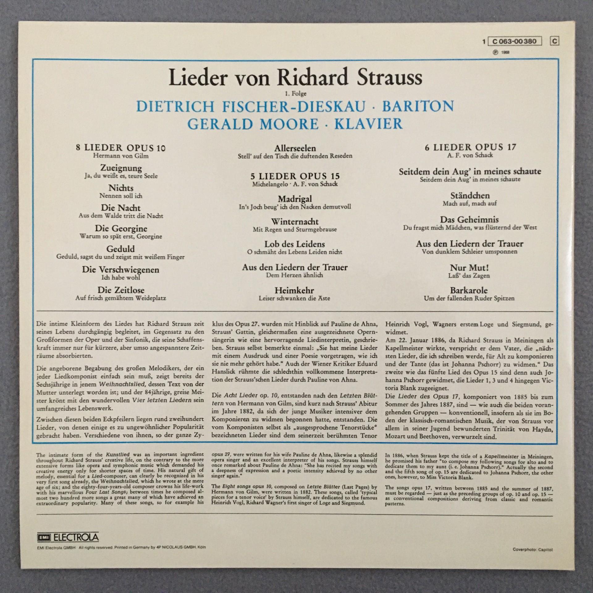 T201 R. Strauss Songs Vol.1 Fischer-Dieskau Moore Piano EMI 1 C 063-00 380 Ster
