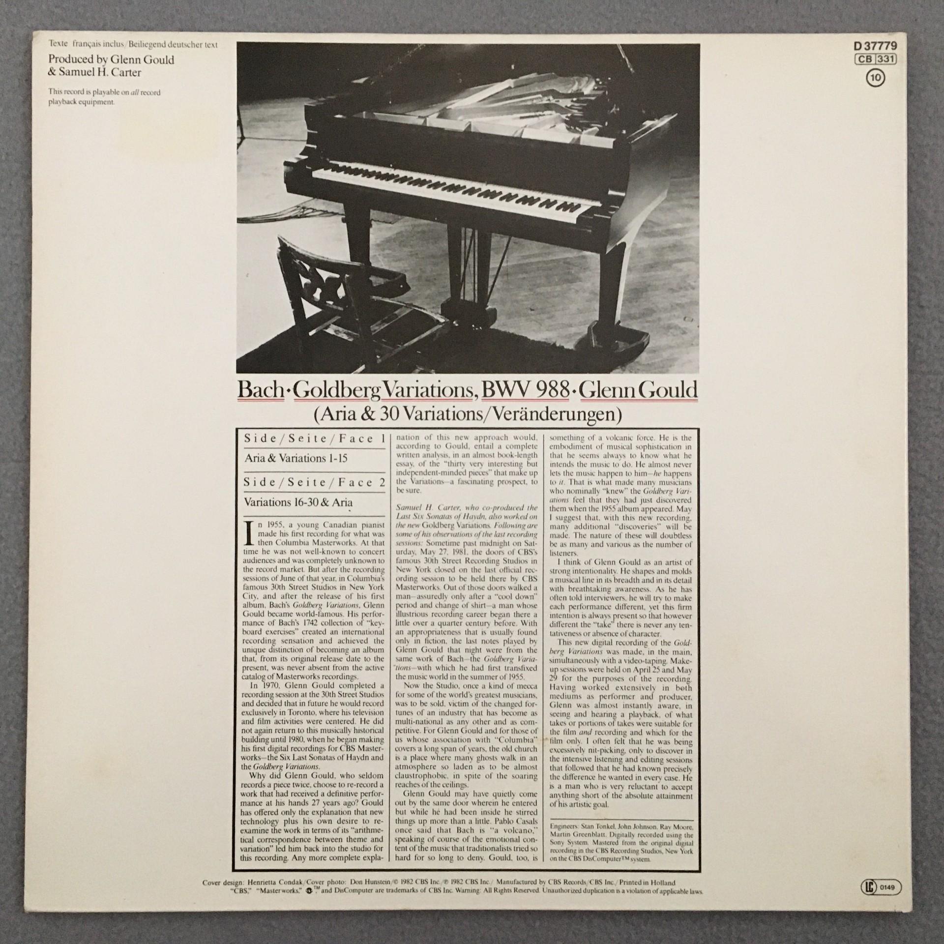 T207 Bach The Goldberg Variations Gould Piano CBS D 37779 Digital Stereo
