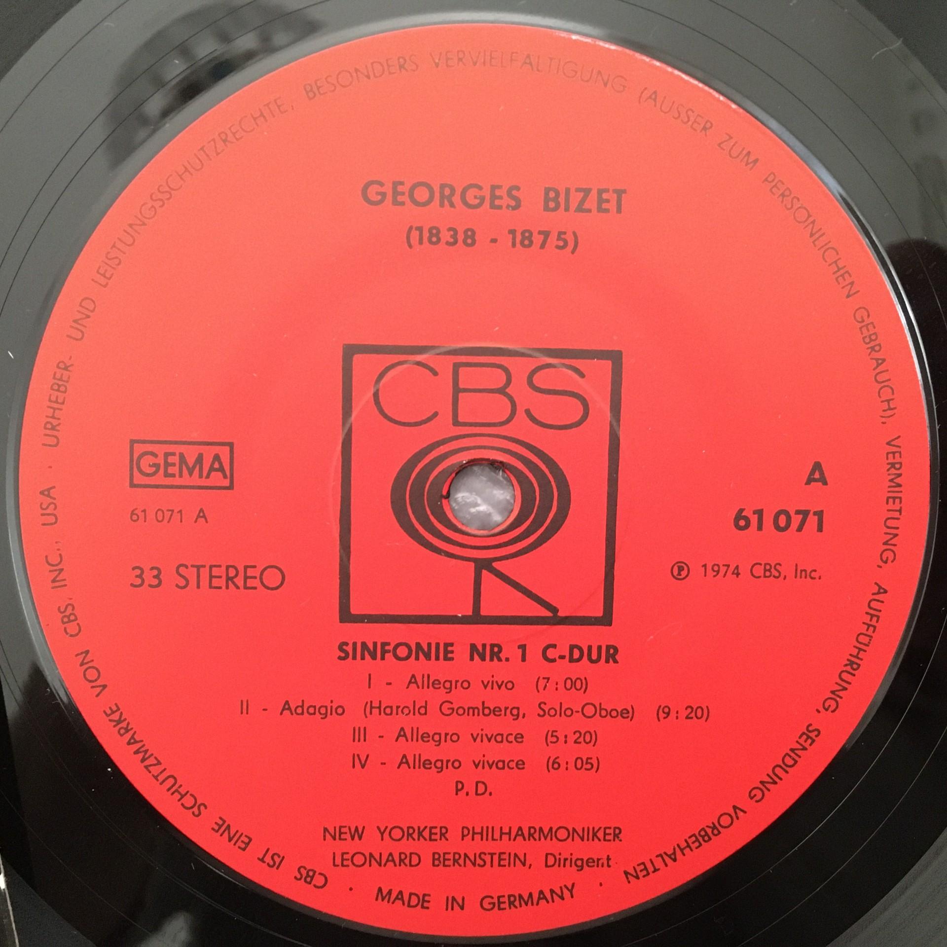 T210 Bizet Prokofiev Symphonies Bernstein CBS 61 071 Stereo