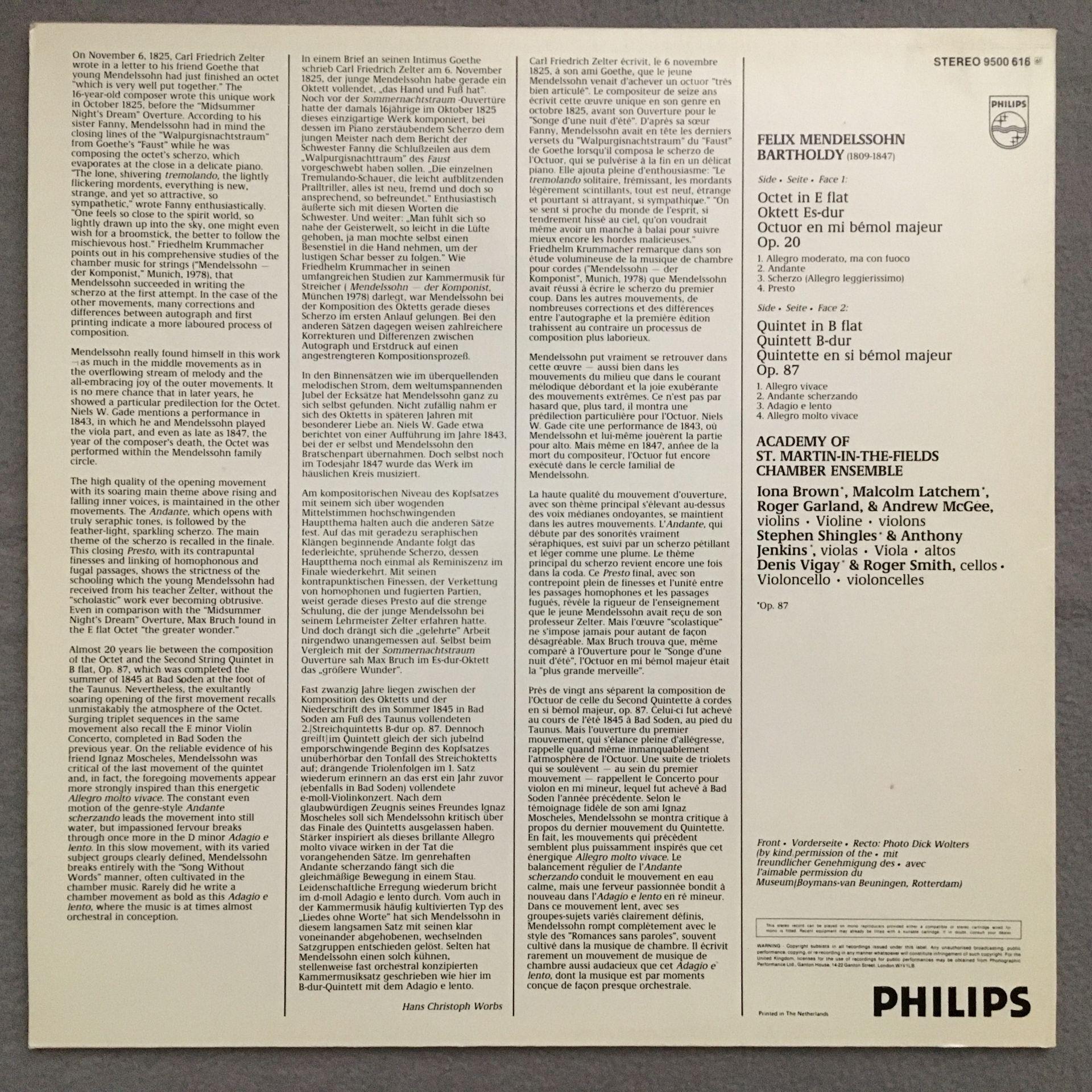 T221 Mendelssohn Octet String Quintet Chamber Ensemble Philips 9500 616 Stereo
