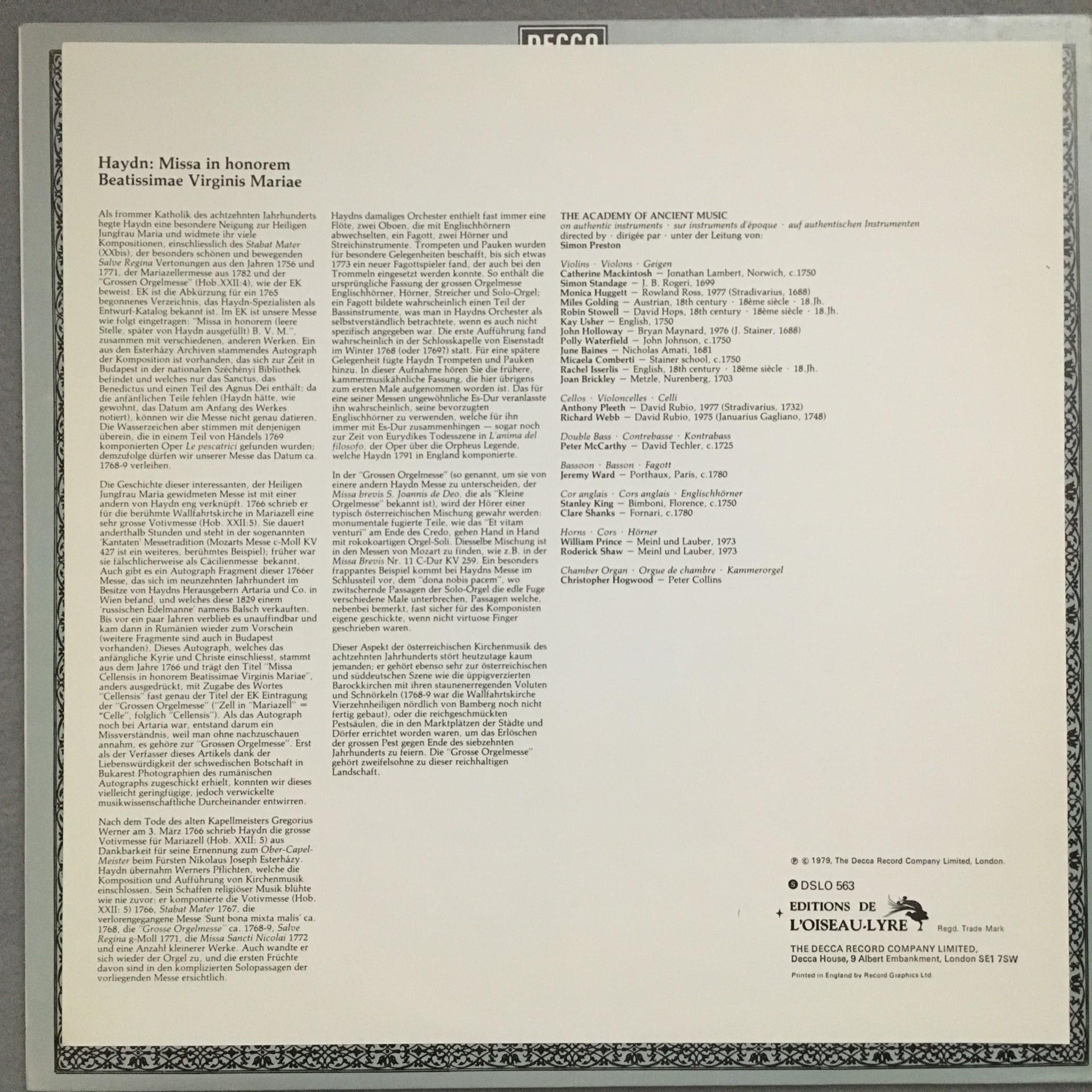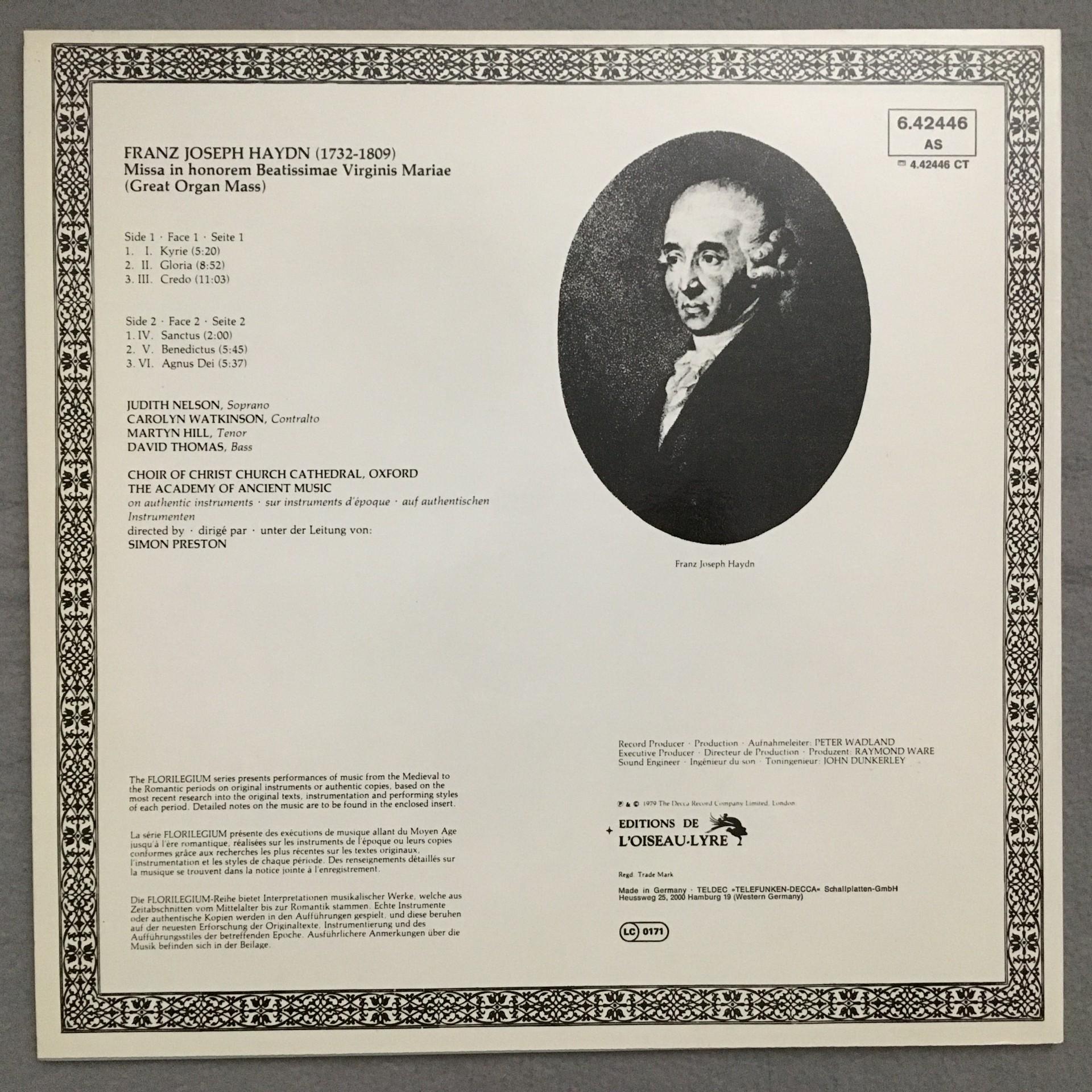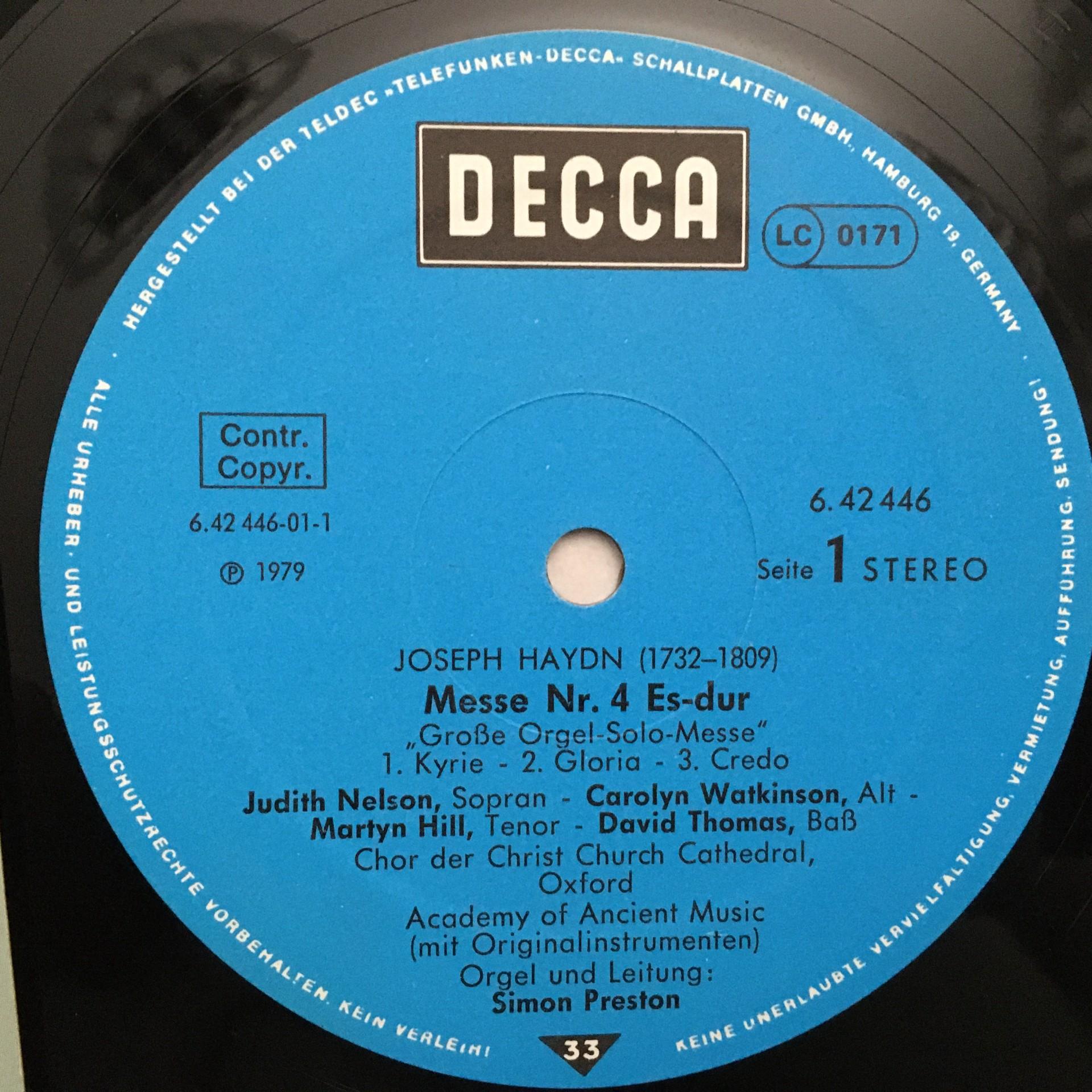 T225 Haydn Mass No.4 Nelson Thomas Preston DECCA 6.42446 AS Stereo