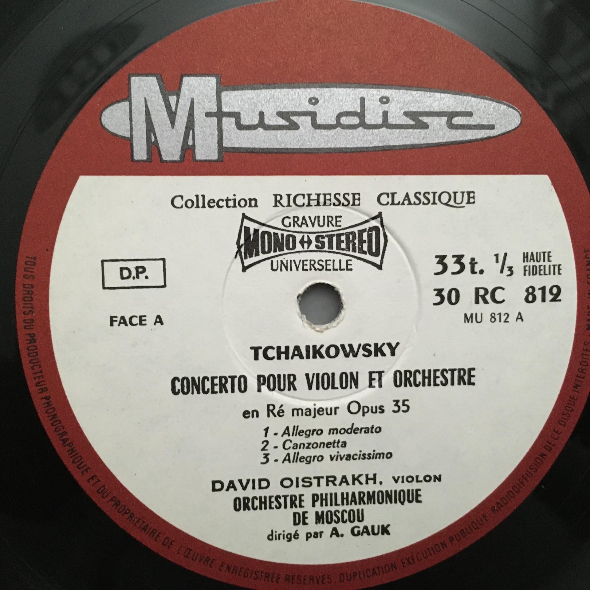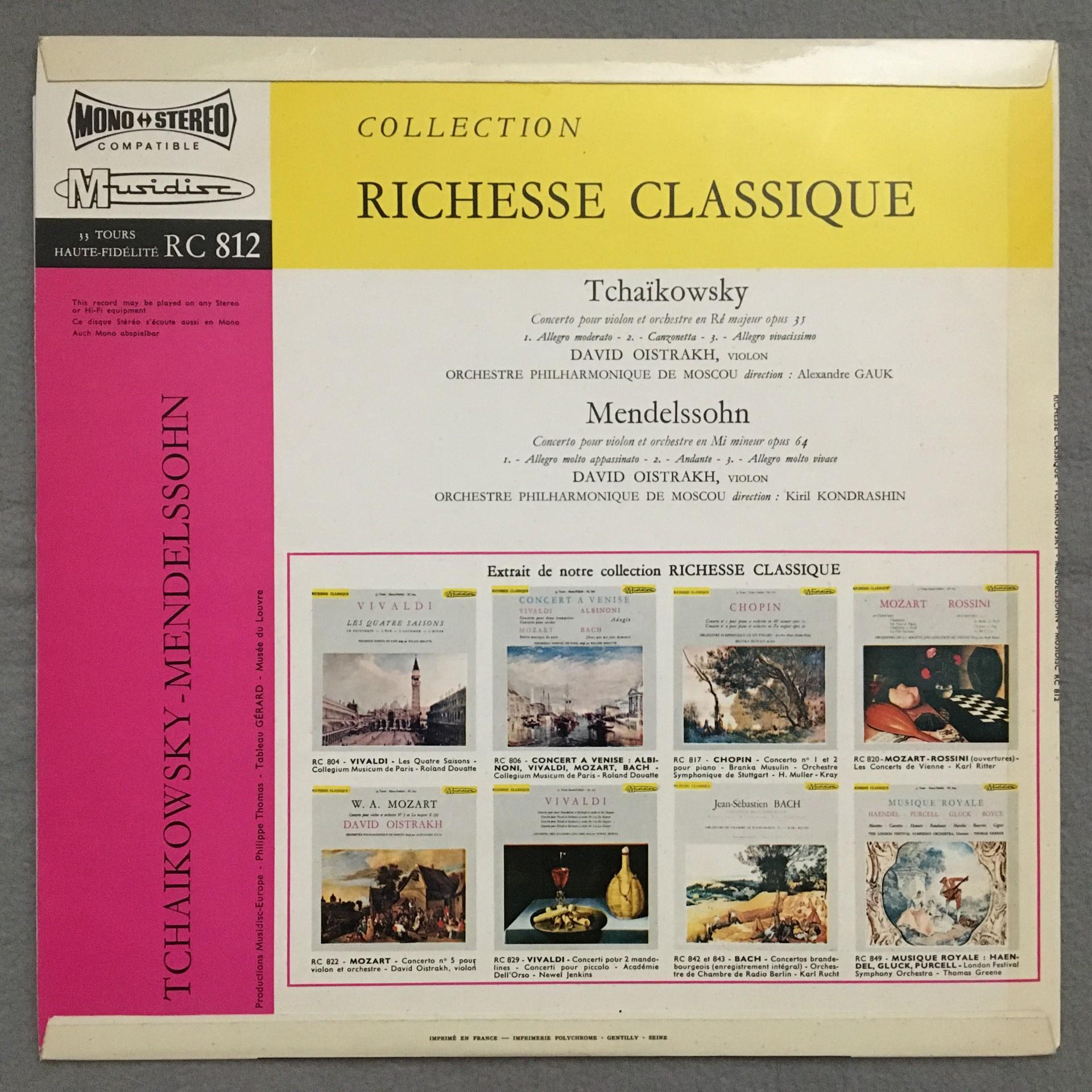 T226 Tchaikovsky Mendelssohn Violin Conc. Oistrakh Kondrashin Musidisc RC 812 St