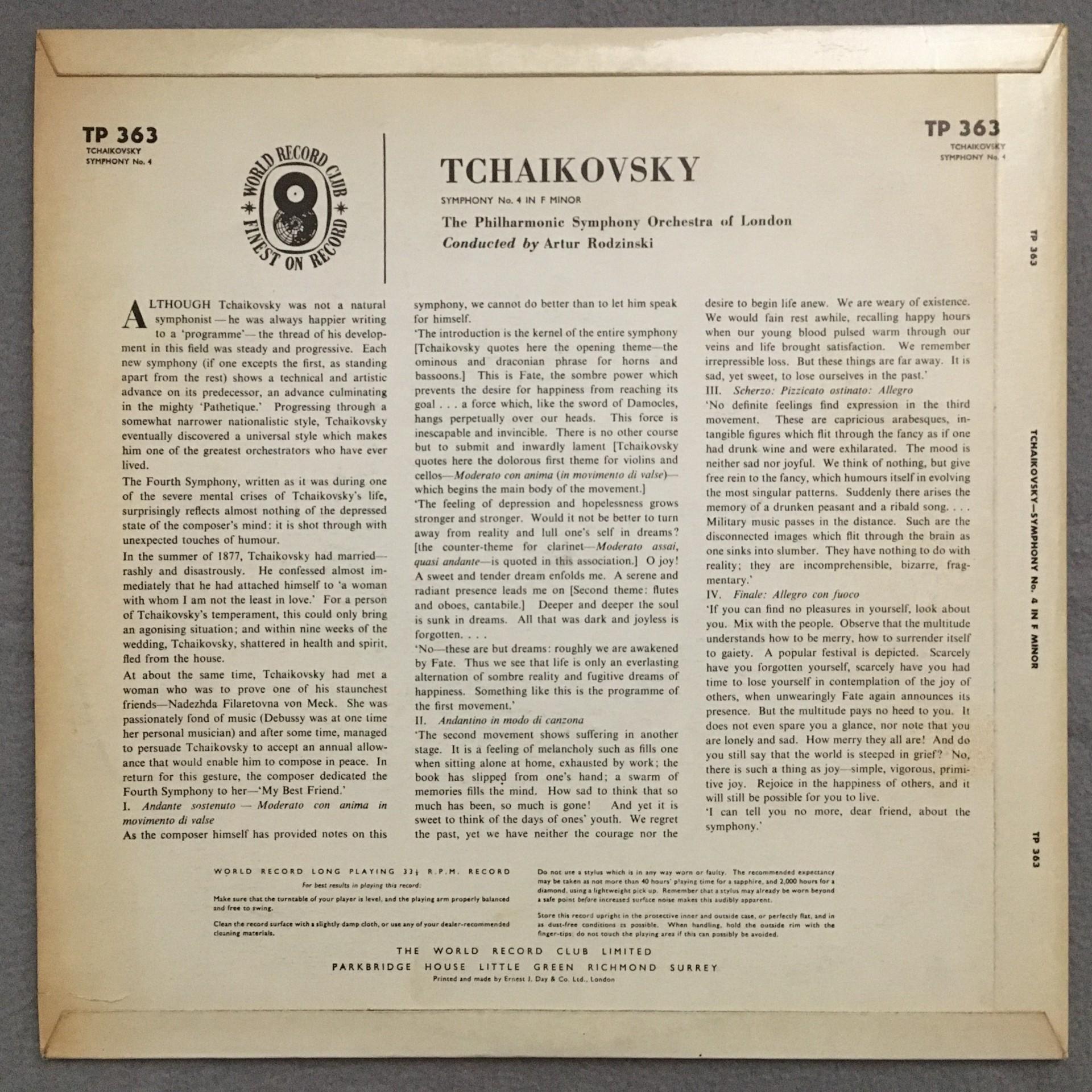 T233 Tchaikovsky Symphony No.4 Rodzinski World Record Club TP 363