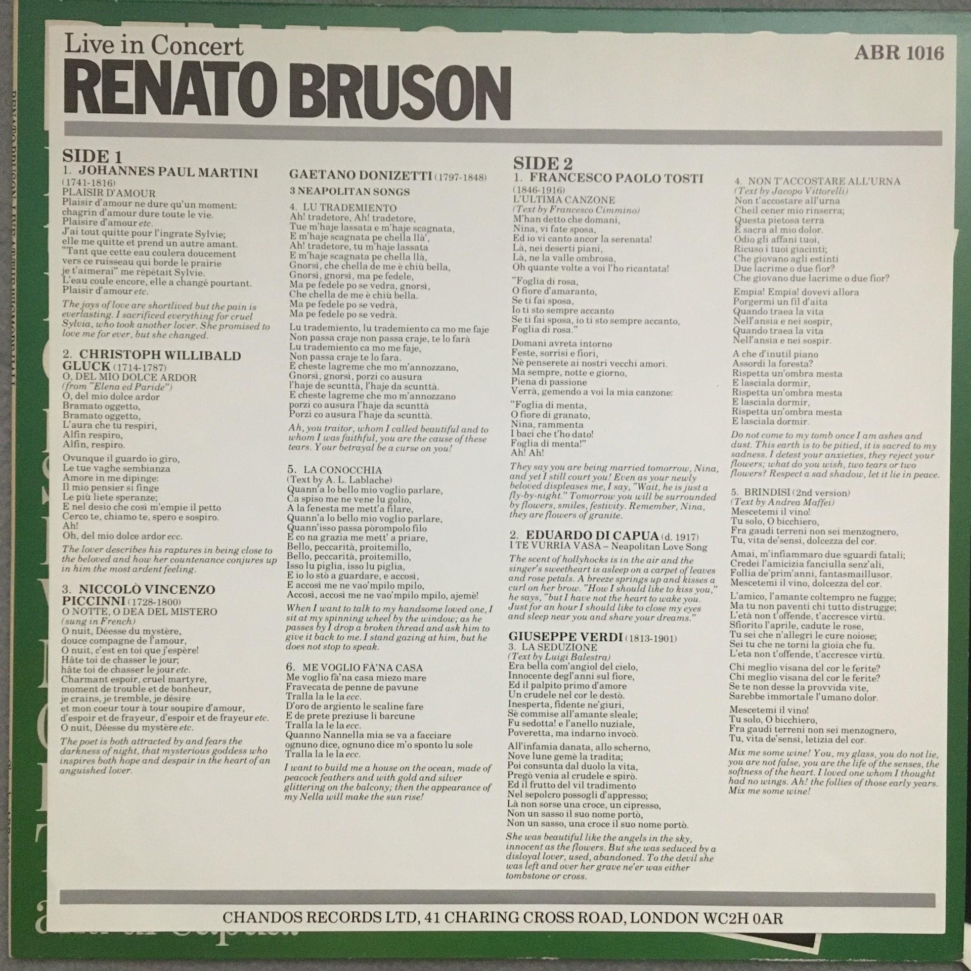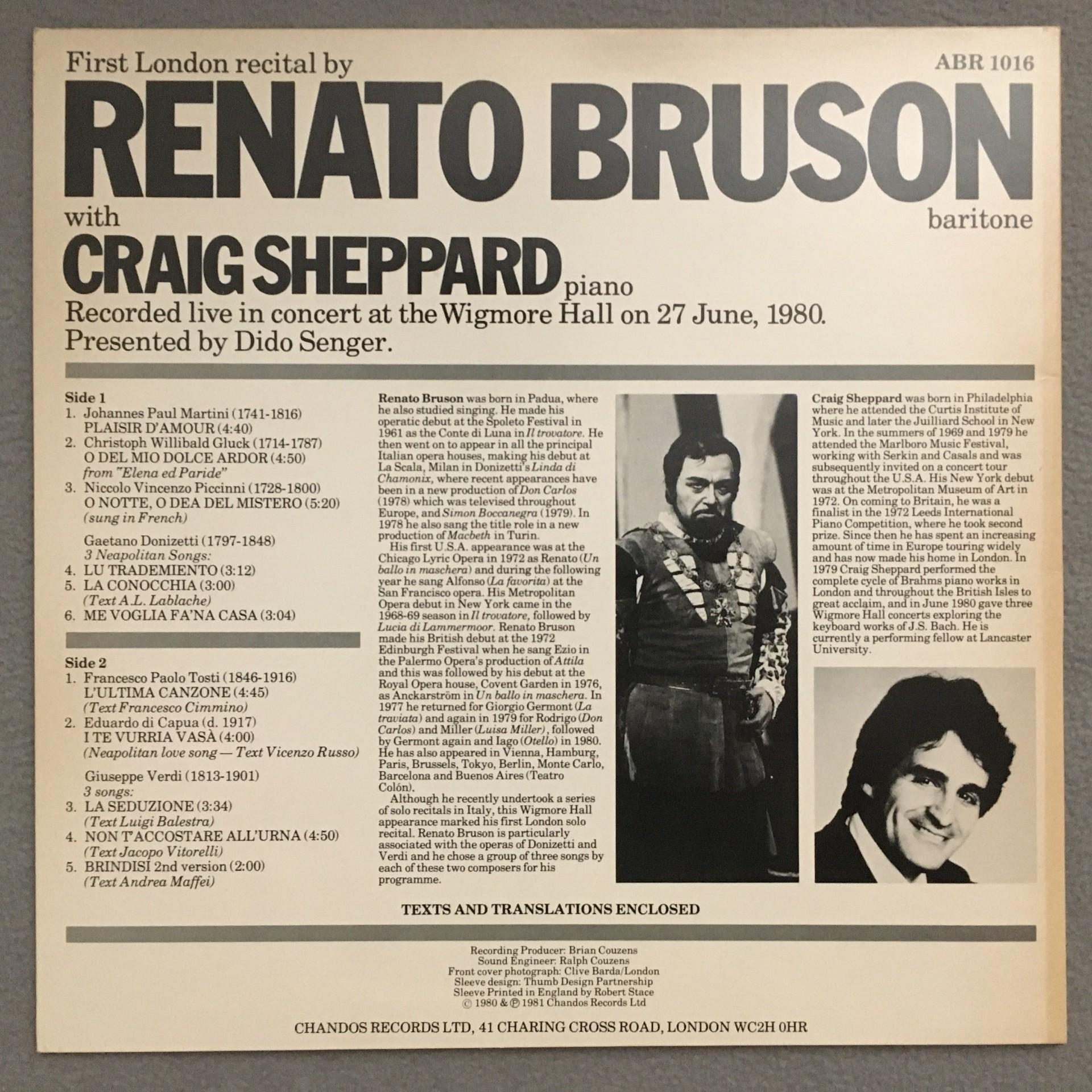 T245 Renato Bruson Live in Concert Sheppard Piano Chandos ABR 1016 Stereo
