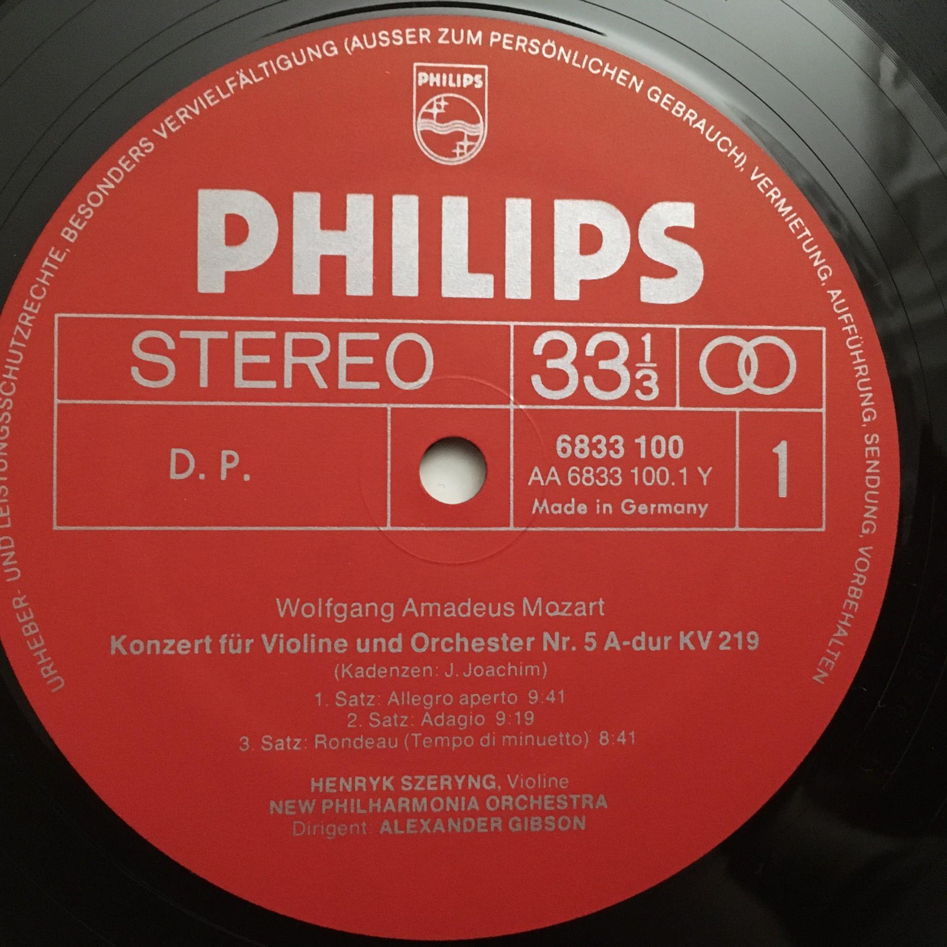 T246 Mozart Violin Concerto Beethoven Romance Szeryng Gibson Philips 6833 100 St