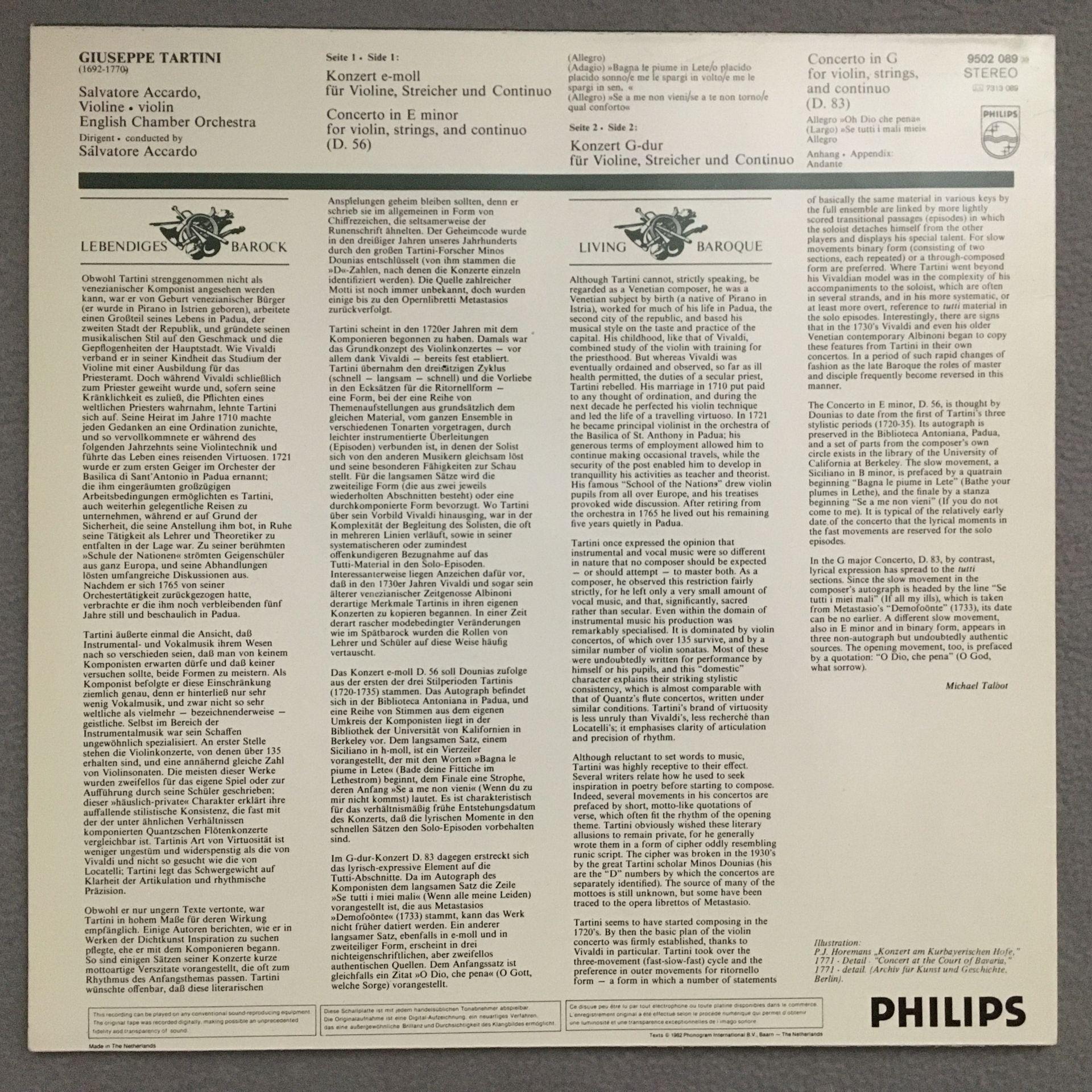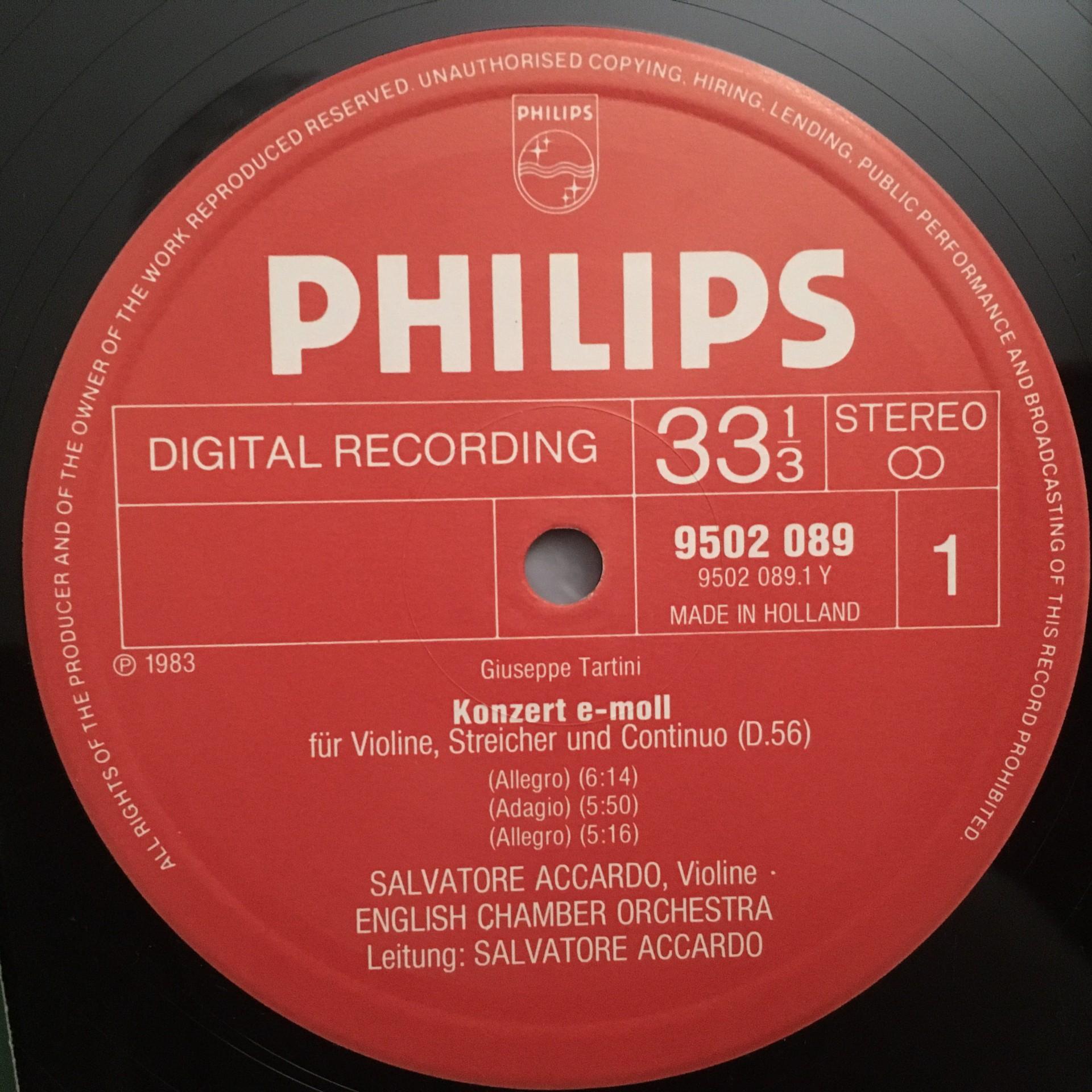 T248 Tartini 2 Violin Concertos Accardo Philips 9502 089 Stereo